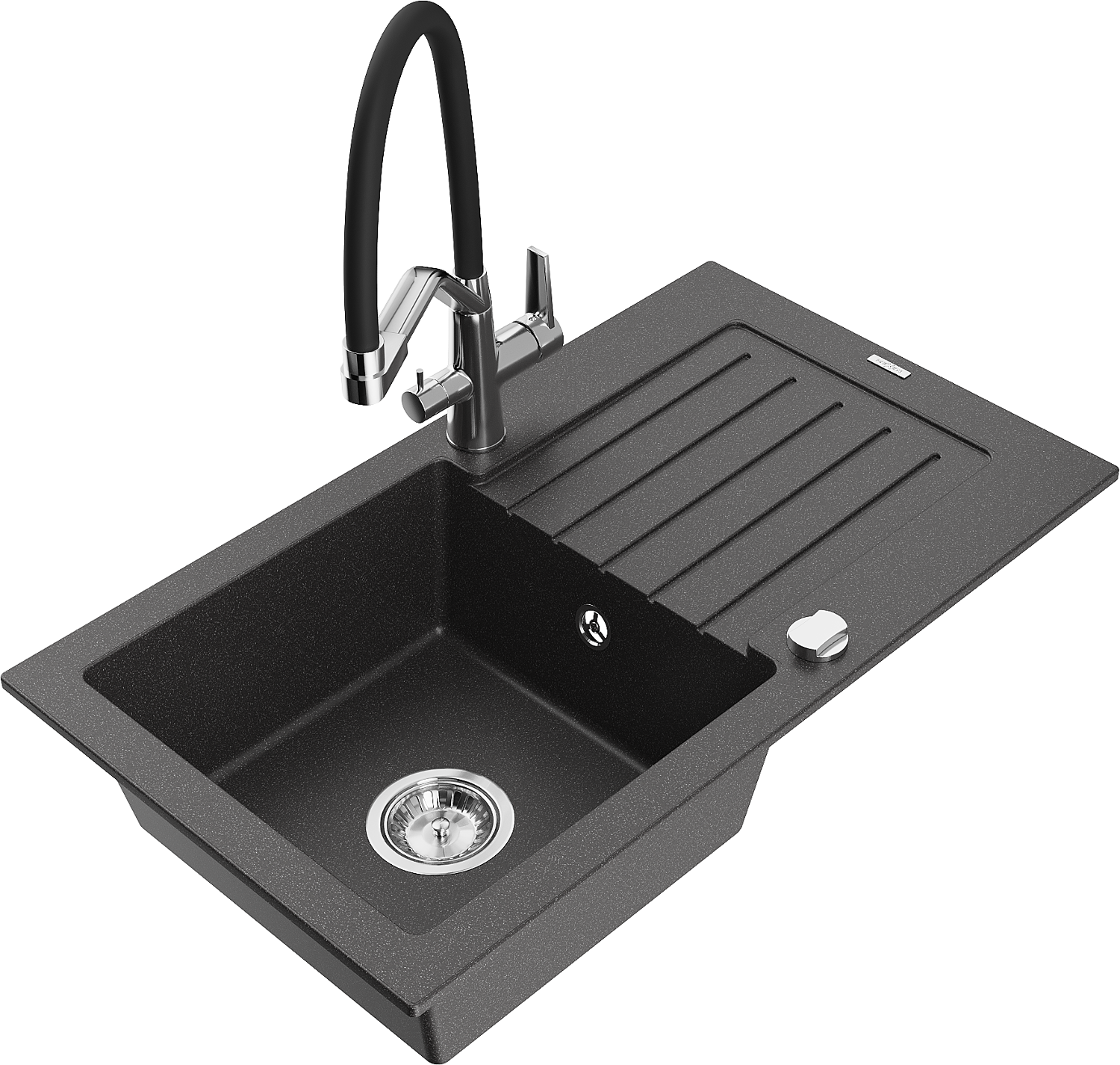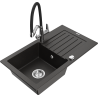 Mexen Pablo lavello in granito a 1 vasca con gocciolatoio e miscelatore da cucina Duo, nero maculato - 6510-76-671701-07