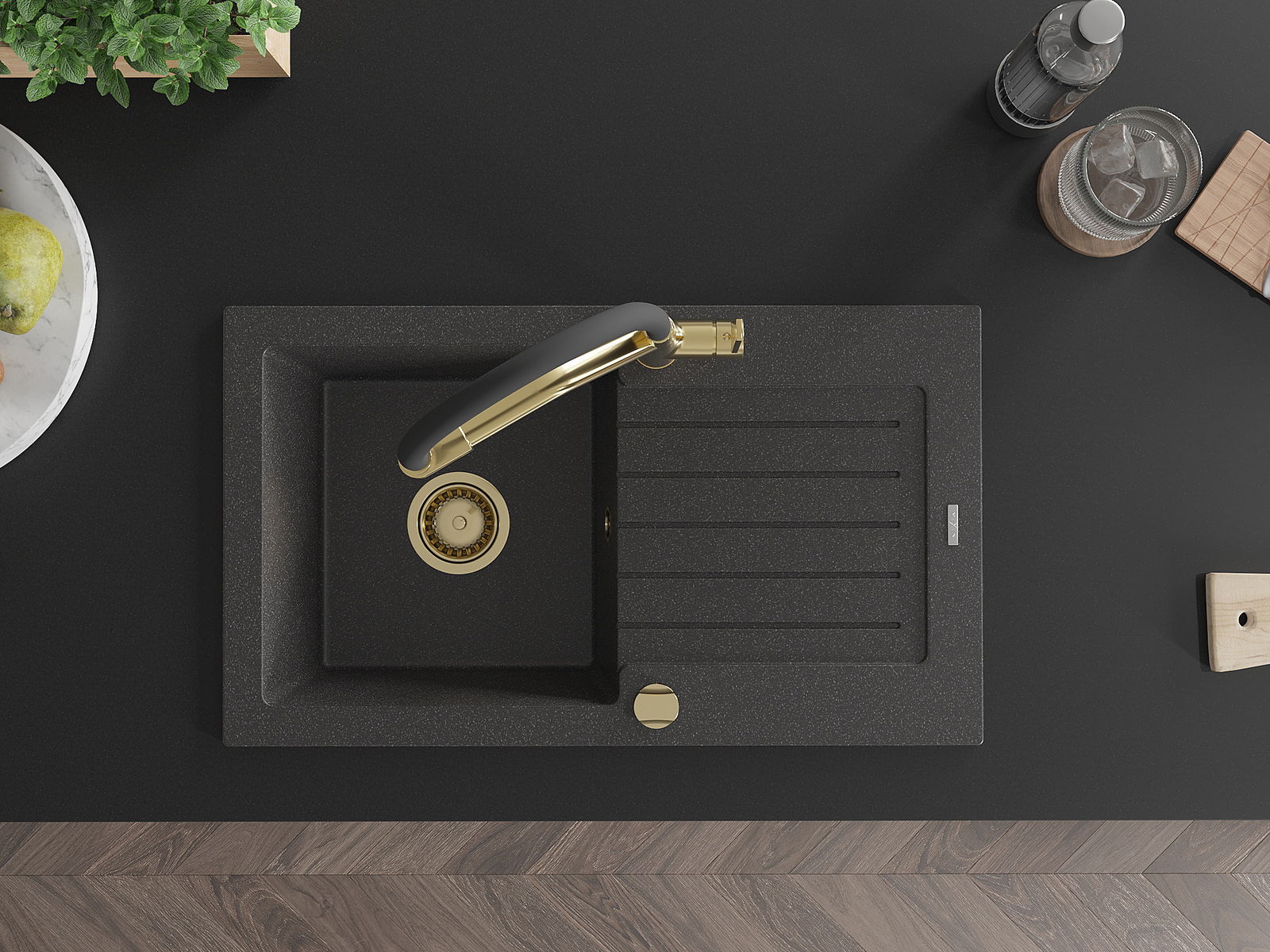 Mexen Pablo lavello in granito a 1 vasca con scolapiatti e rubinetto da cucina Duo, nero maculato - 6510-76-671701-57-G
