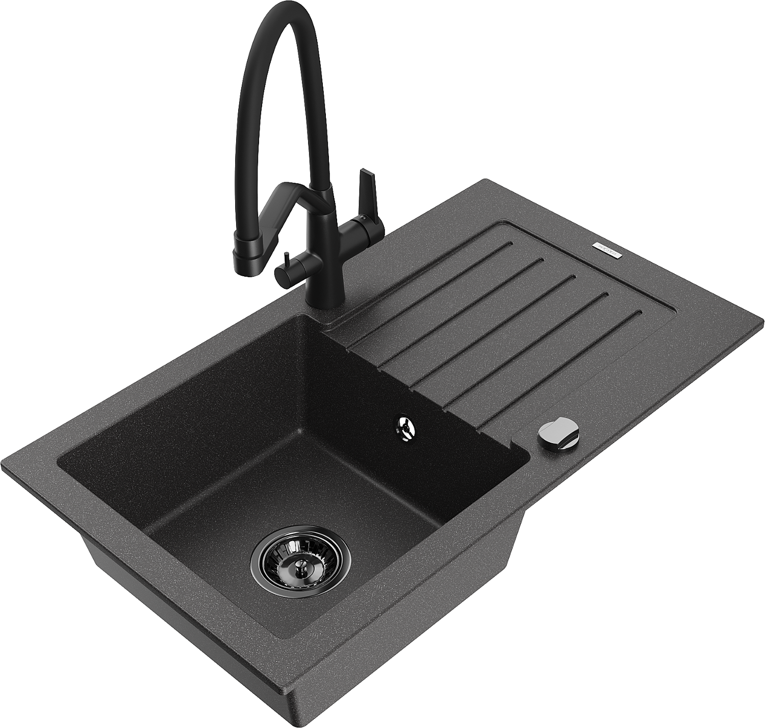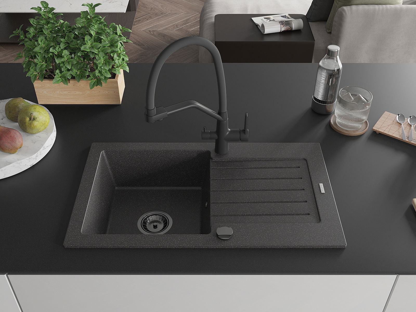 Mexen Pablo lavello in granito a 1 vasca con scolapiatti e miscelatore Duo, nero punteggiato - 6510-76-671701-70-B