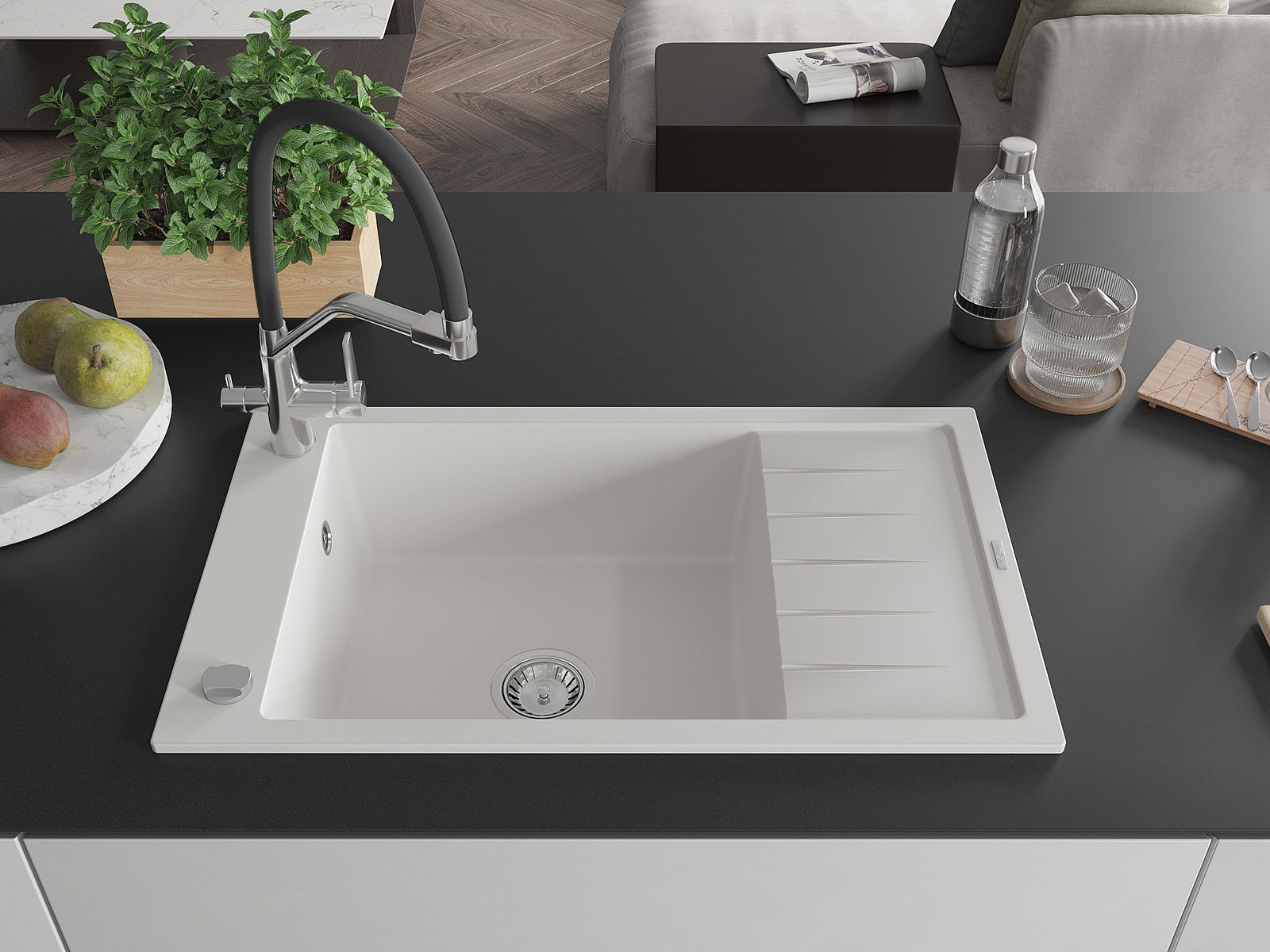 La scelta di un lavello con sgocciolatoio è una soluzione pratica che consente di riporre piatti, verdure e frutta lavati. Lo sgocciolatoio facilita la cucina quotidiana e aiuta a mantenere l'ordine in cucina.