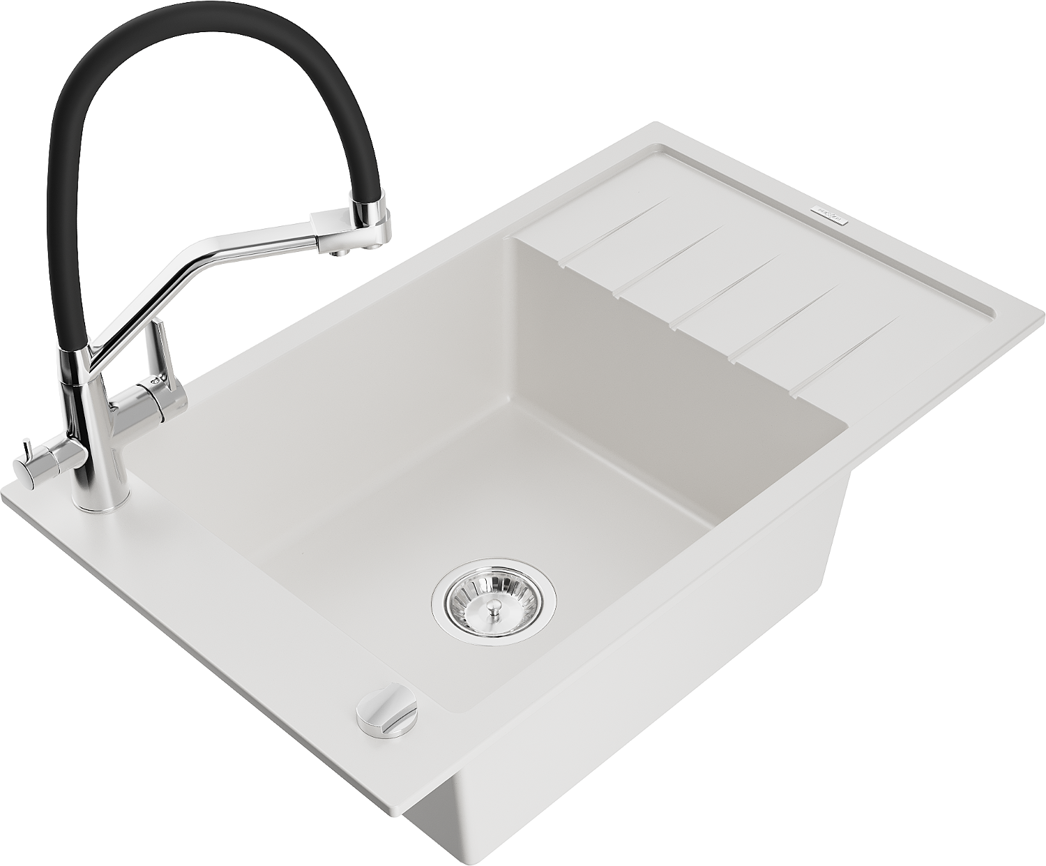Mexen Elias lavello in granito 1-vasca con gocciolatoio e miscelatore cucina Duo, bianco - 6511-20-671701-07