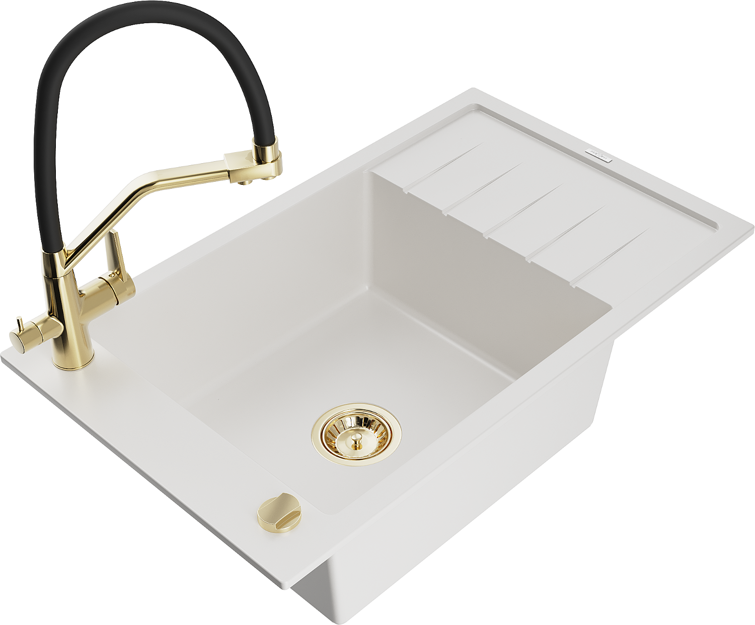 Mexen Elias lavello da cucina in granito, 1 vasca con scolapiatti e miscelatore Duo, bianco - 6511-20-671701-57-G