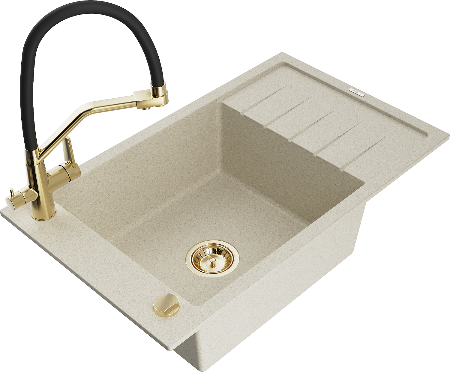 Mexen Elias lavello in granito a 1 vasca con scolapiatti e rubinetto da cucina Duo, beige - 6511-69-671701-57-G