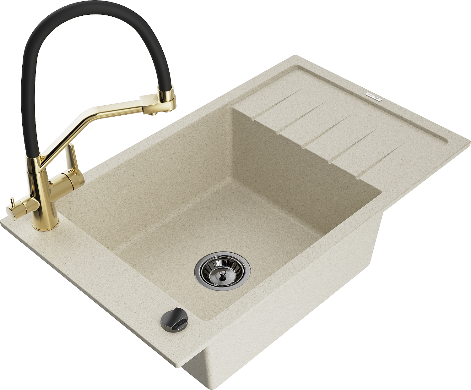 Mexen Elias lavello in granito a 1 vasca con scolapiatti e rubinetto da cucina Duo, beige - 6511-69-671701-57-B