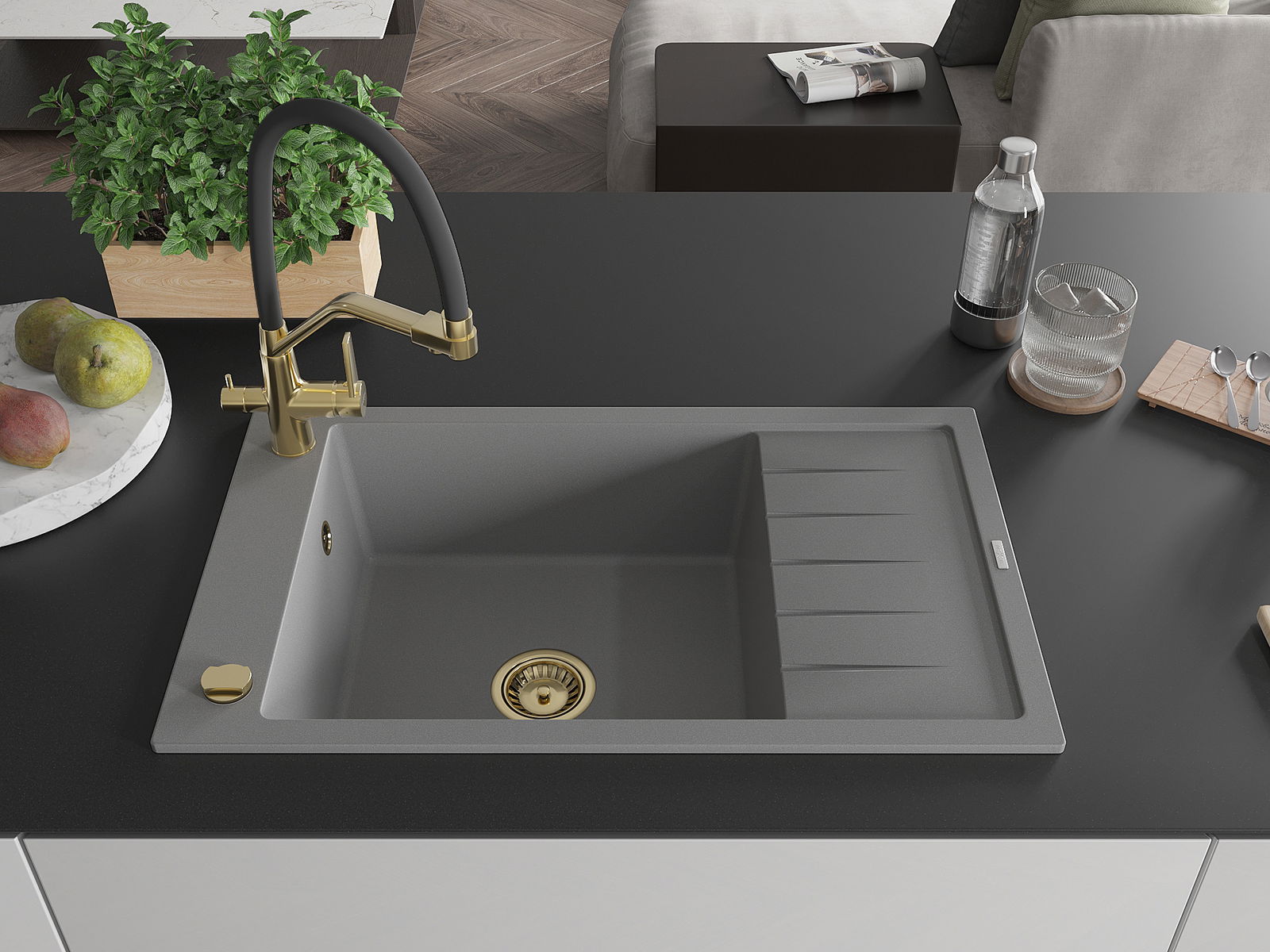 La scelta di un lavello con sgocciolatoio è una soluzione pratica che consente di riporre piatti, verdure e frutta lavati. Lo sgocciolatoio facilita la cucina quotidiana e aiuta a mantenere l'ordine in cucina.