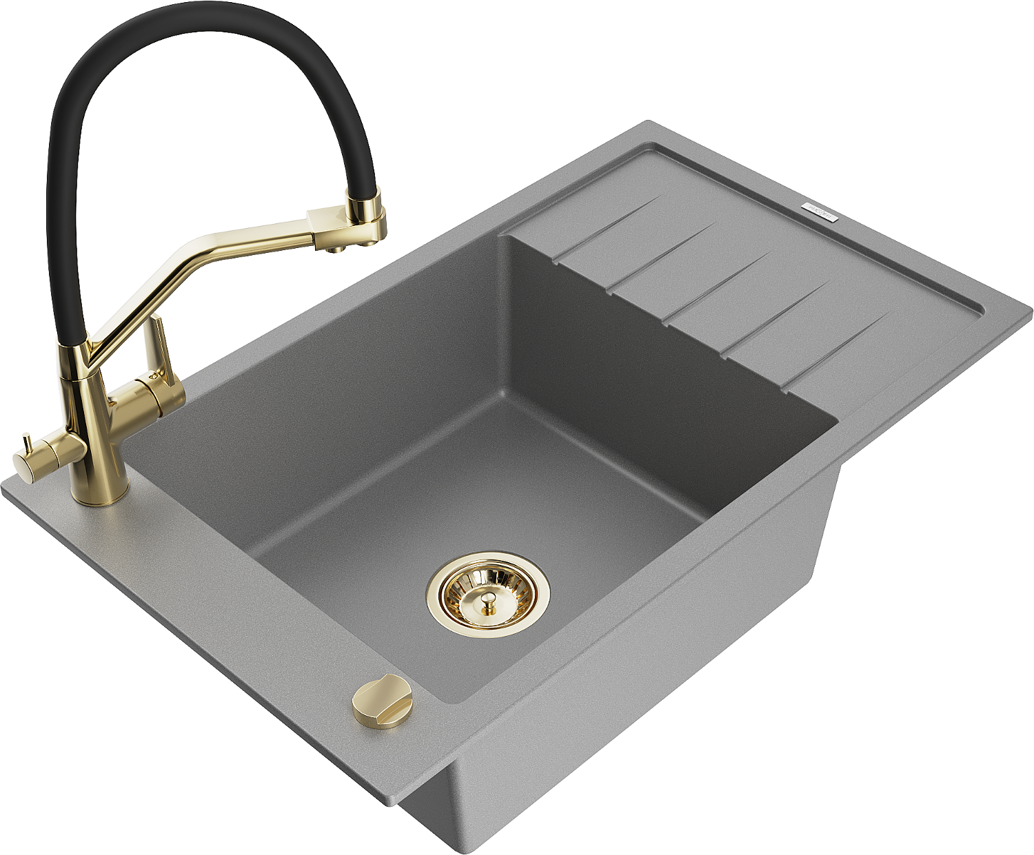 Mexen Elias lavello in granito a 1 vasca con scolapiatti e miscelatore Duo, grigio - 6511-71-671701-57-G