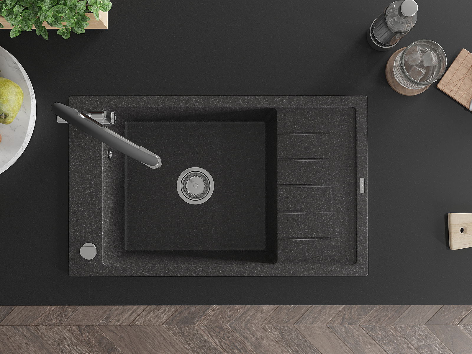 Il lavello è realizzato in granito di alta qualità. Rappresenta un complemento elegante e, soprattutto, pratico per ogni cucina, indipendentemente dal suo stile. L'alta qualità e la durata del granito garantiscono un utilizzo che dura per molti anni.
