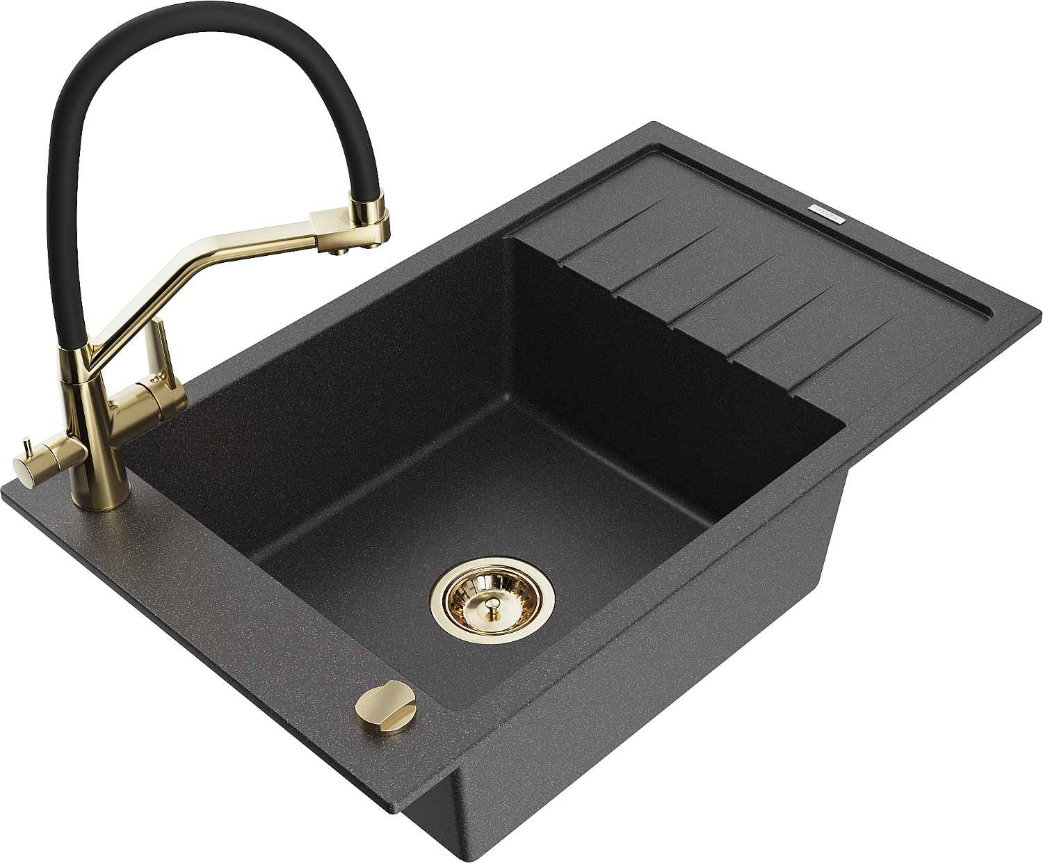Mexen Elias lavello da cucina in granito 1-vasca con sgocciolatoio e rubinetto Duo, nero punteggiato - 6511-76-671701-57-G