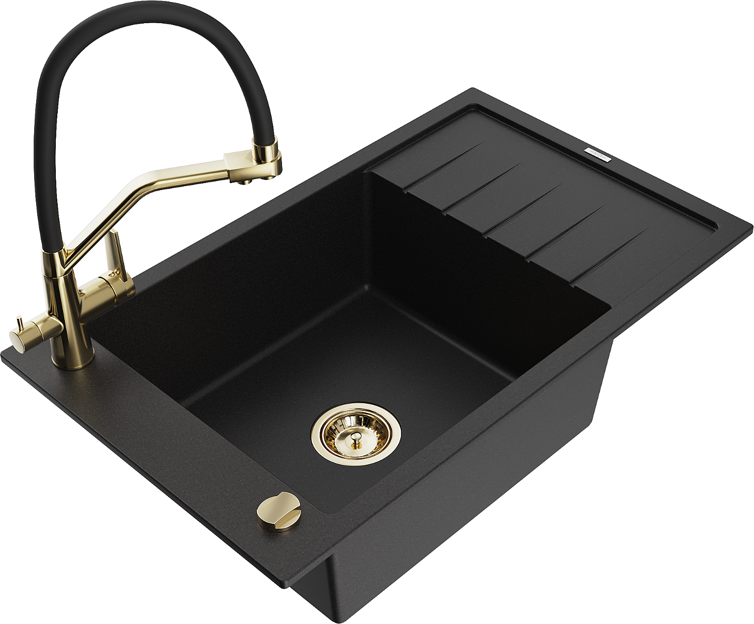 Mexen Elias lavello in granito a 1 vasca con scolapiatti e miscelatore cucina Duo, nero - 6511-77-671701-57-G