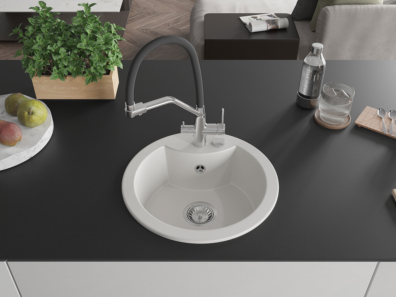 Il lavello è realizzato in granito di alta qualità. Rappresenta un complemento elegante e, soprattutto, pratico per ogni cucina, indipendentemente dal suo stile. L'alta qualità e la durata del granito garantiscono un utilizzo che dura per molti anni.