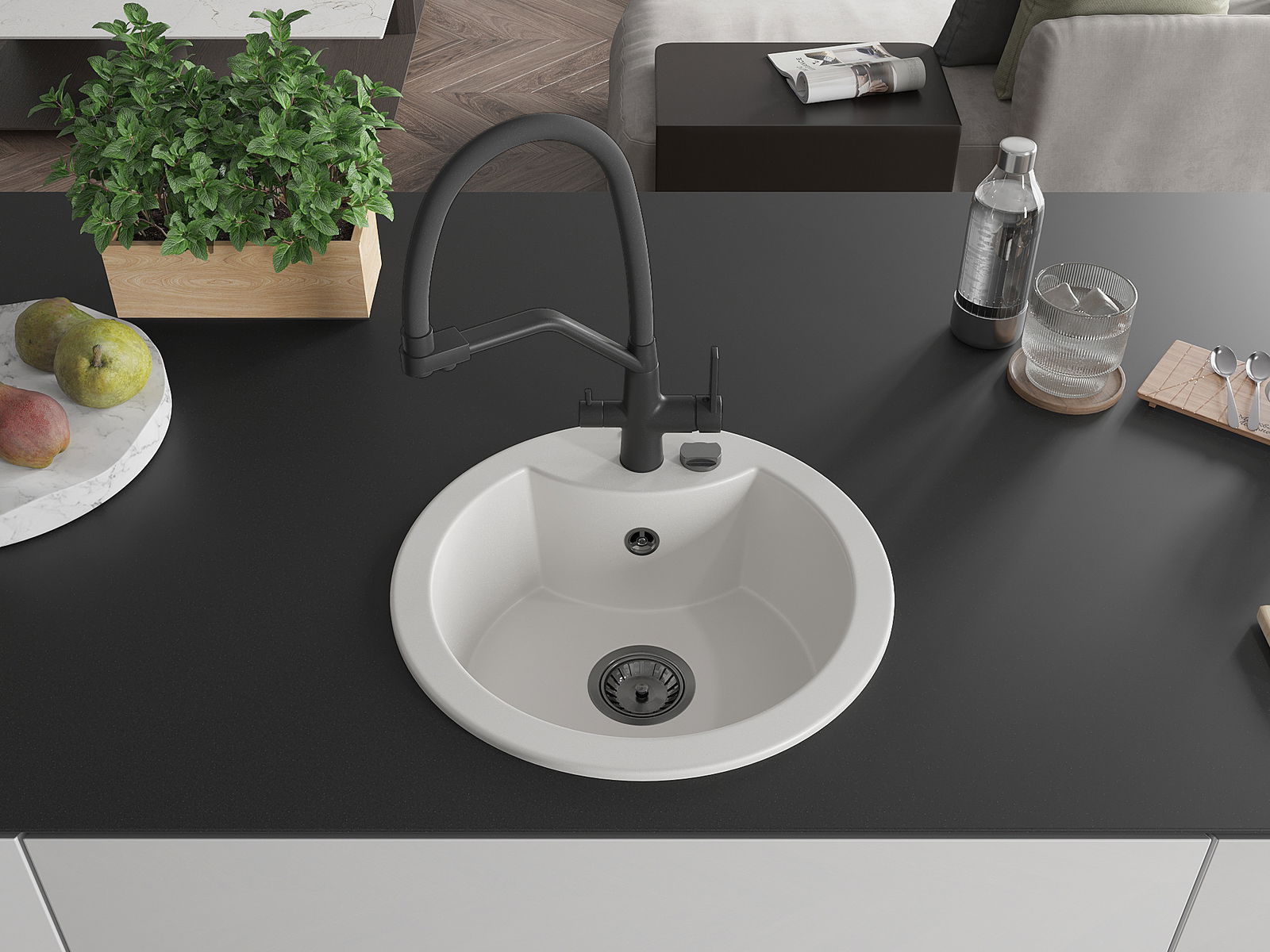 Il lavello è realizzato in granito di alta qualità. Rappresenta un complemento elegante e, soprattutto, pratico per ogni cucina, indipendentemente dal suo stile. L'alta qualità e la durata del granito garantiscono un utilizzo che dura per molti anni.