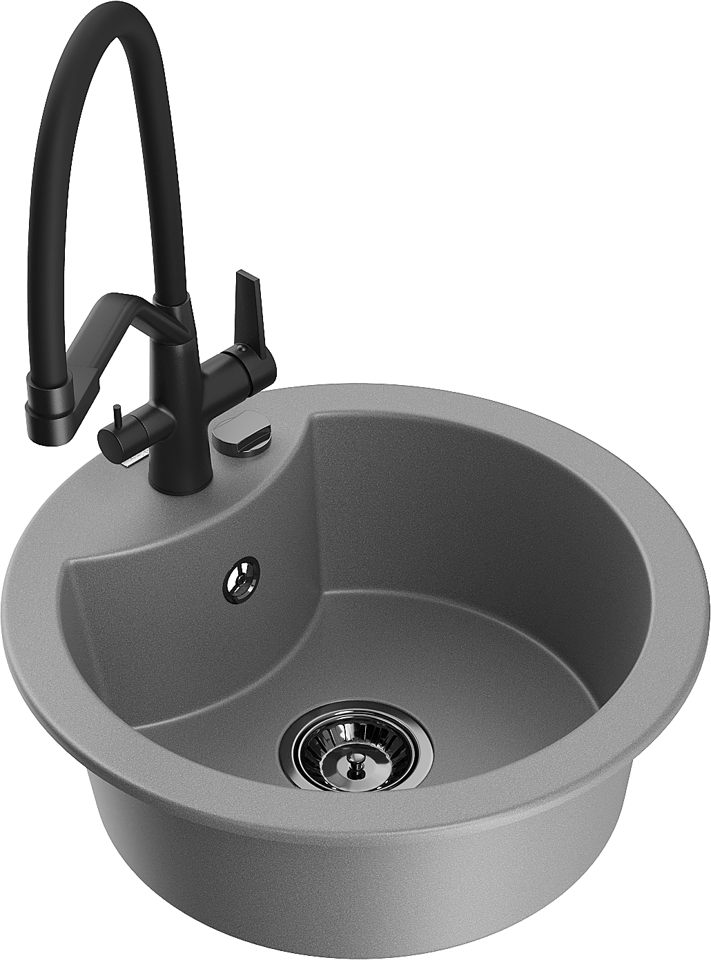Mexen Diego lavello in granito 1-vasca con miscelatore da cucina Duo, grigio - 6512-71-671701-70-B