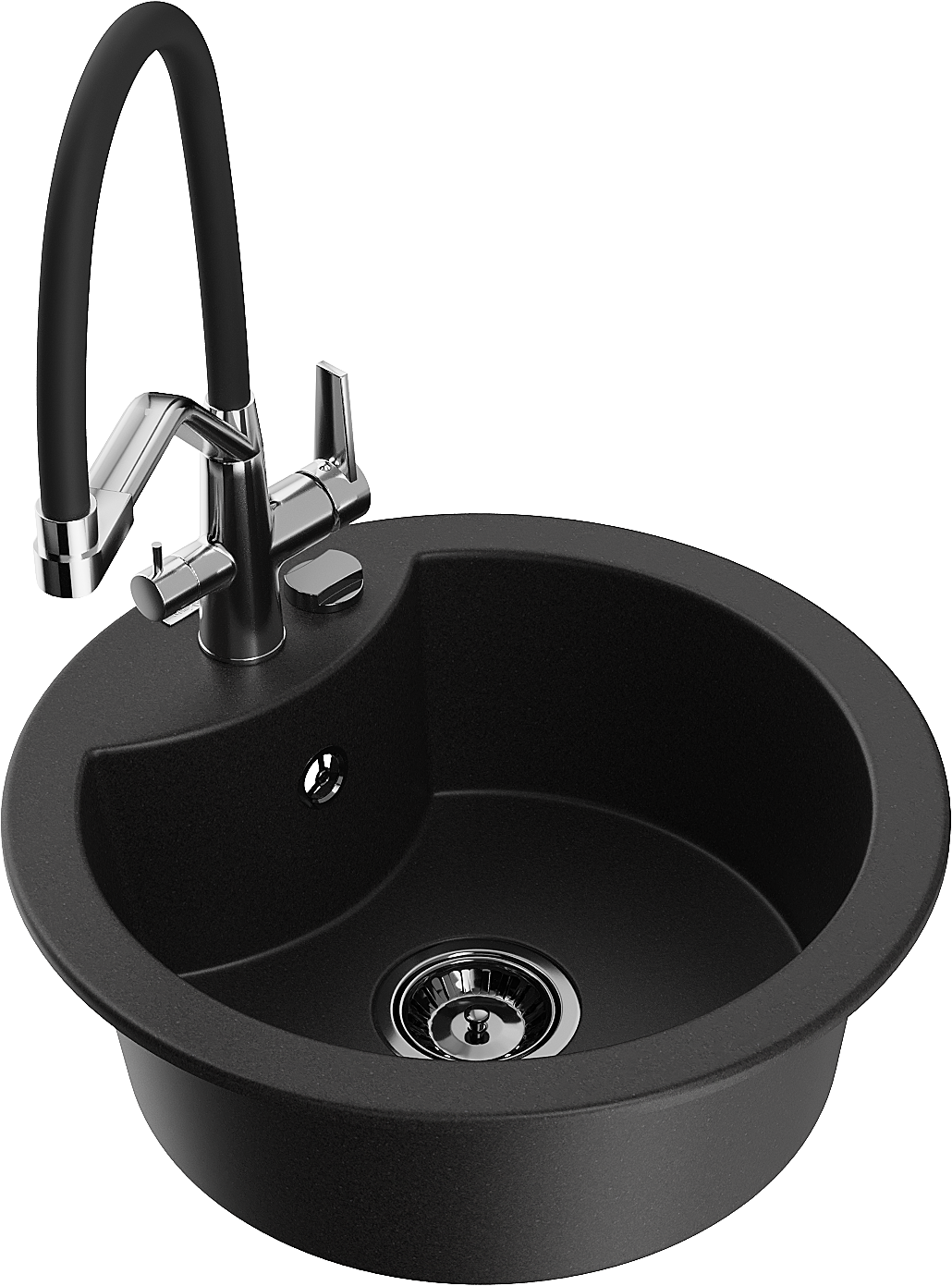 Mexen Diego lavello in granito a una vasca con rubinetto da cucina Duo, nero - 6512-77-671701-07-B