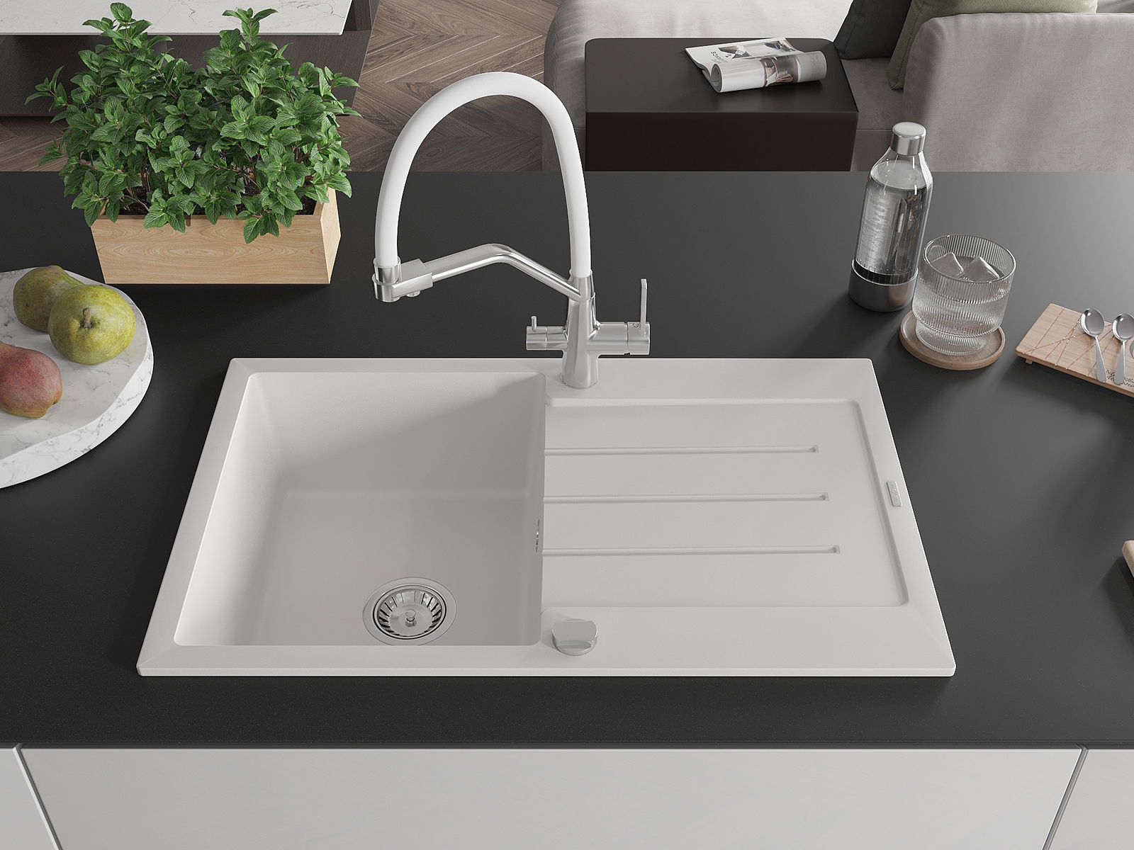 La scelta di un lavello con sgocciolatoio è una soluzione pratica che consente di riporre piatti, verdure e frutta lavati. Lo sgocciolatoio facilita la cucina quotidiana e aiuta a mantenere l'ordine in cucina.