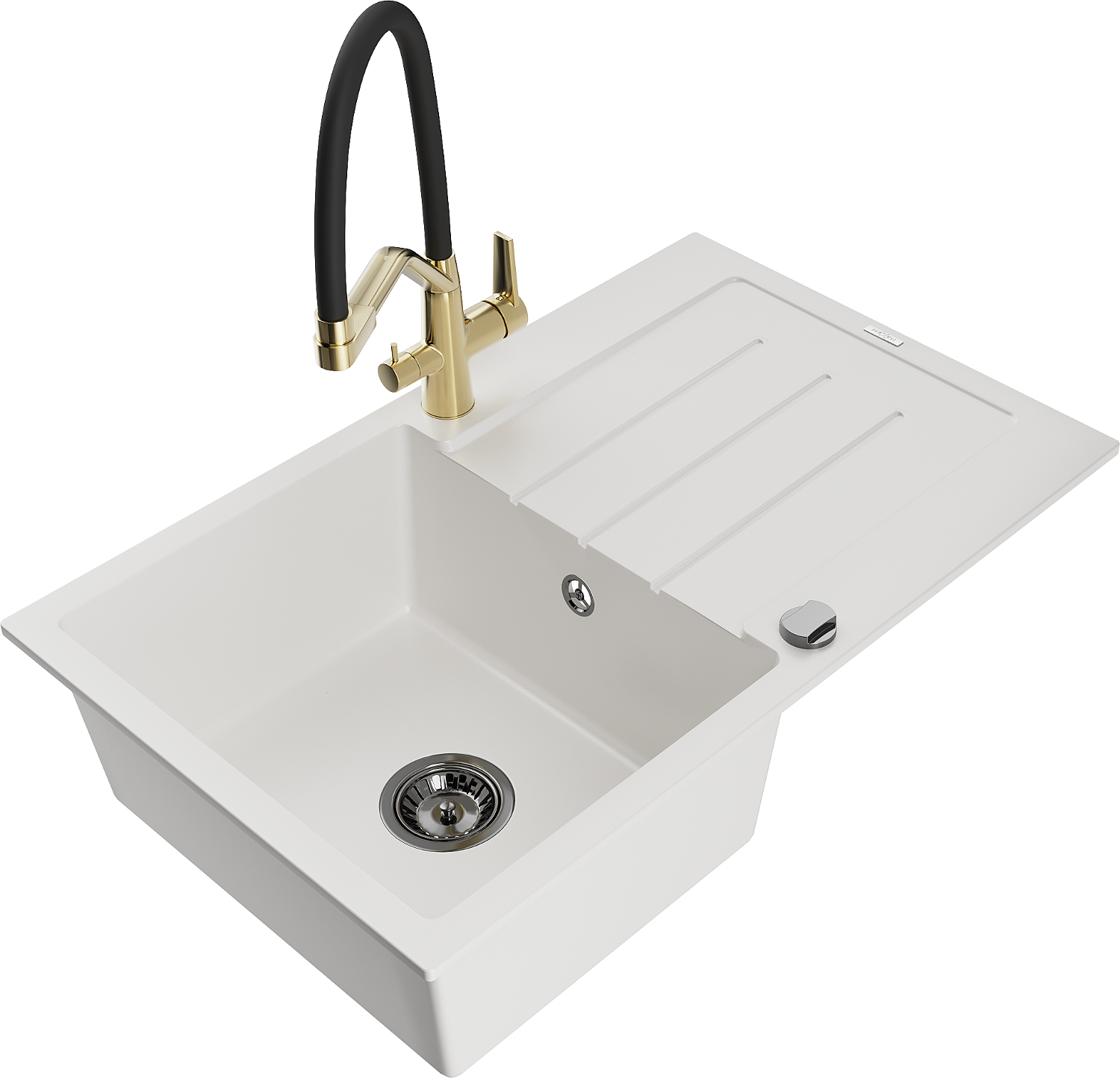 Mexen Bruno lavello in granito a 1 vasca con sgocciolatoio e rubinetto da cucina Duo, bianco - 6513-20-671701-57-B