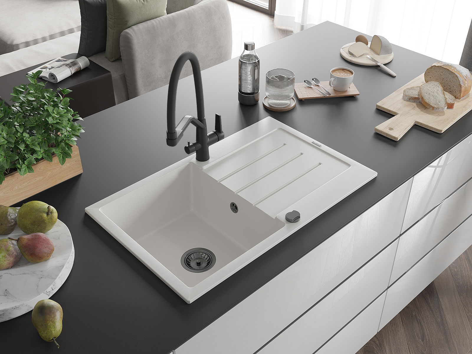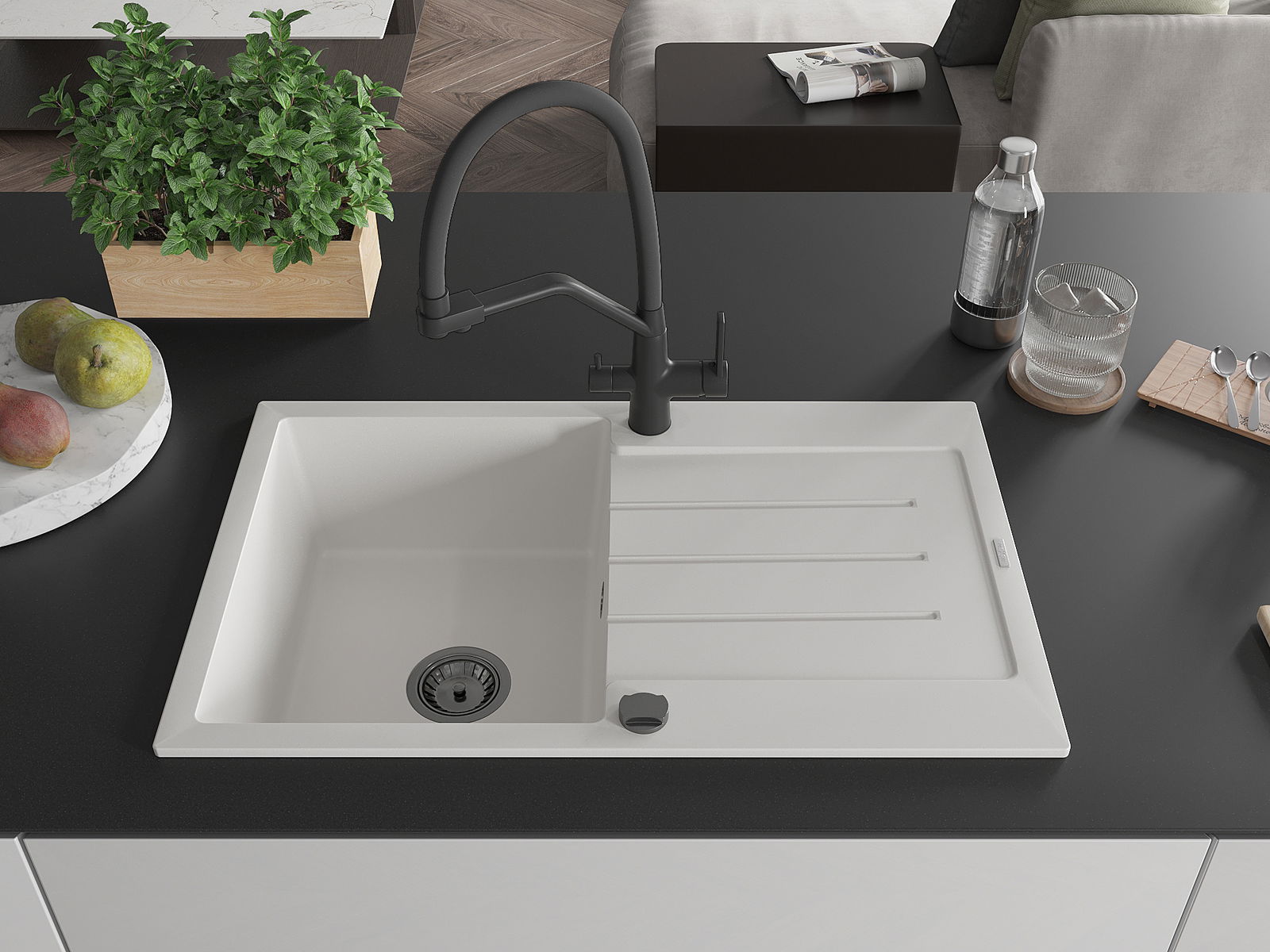 La scelta di un lavello con sgocciolatoio è una soluzione pratica che consente di riporre piatti, verdure e frutta lavati. Lo sgocciolatoio facilita la cucina quotidiana e aiuta a mantenere l'ordine in cucina.