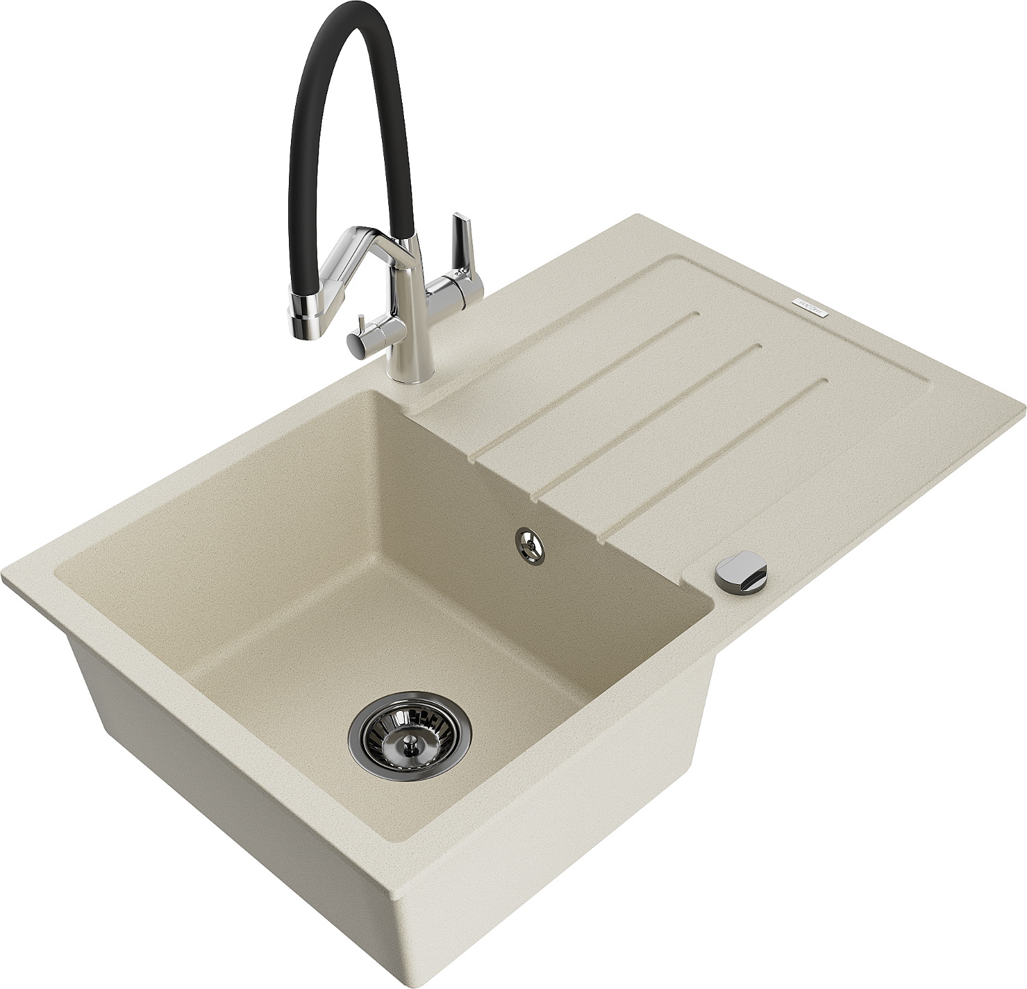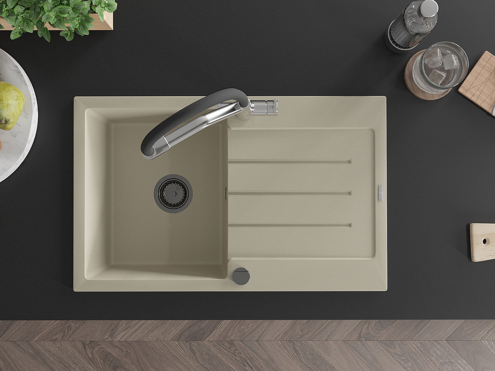 Mexen Bruno lavello in granito 1 vasca con scolapiatti e miscelatore da cucina Duo, beige - 6513-69-671701-07-B