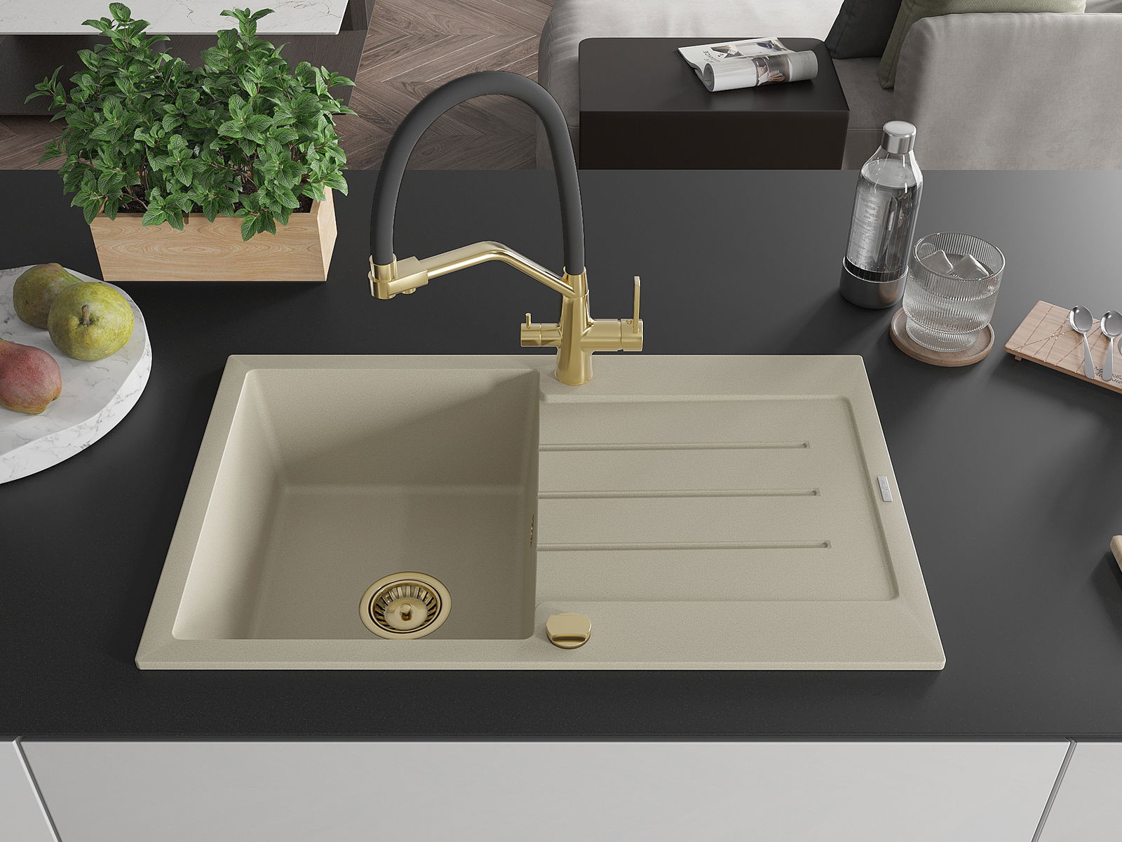 Mexen Bruno lavello in granito a 1 vasca con sgocciolatoio e rubinetto da cucina Duo, beige - 6513-69-671701-57-G