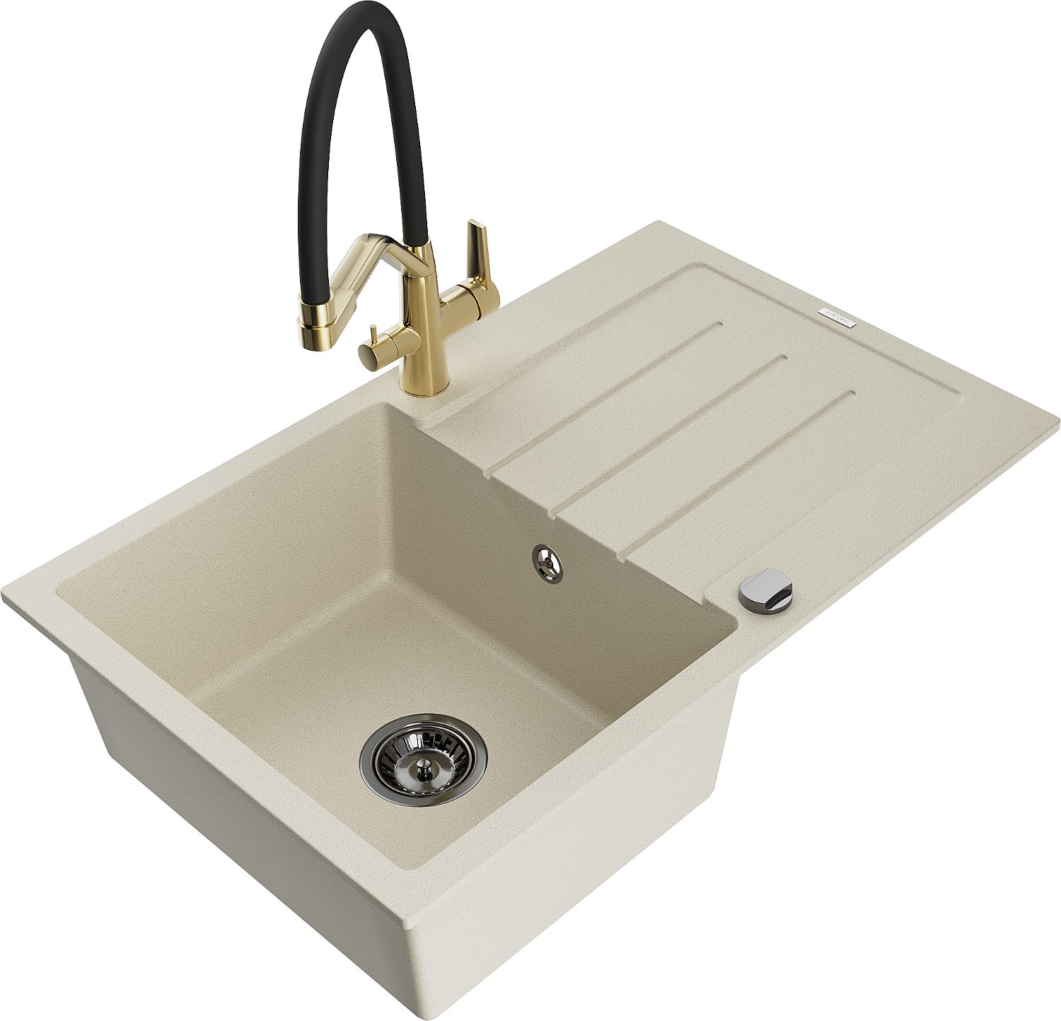 Mexen Bruno lavello in granito a 1 vasca con sgocciolatoio e rubinetto da cucina Duo, beige - 6513-69-671701-57-B