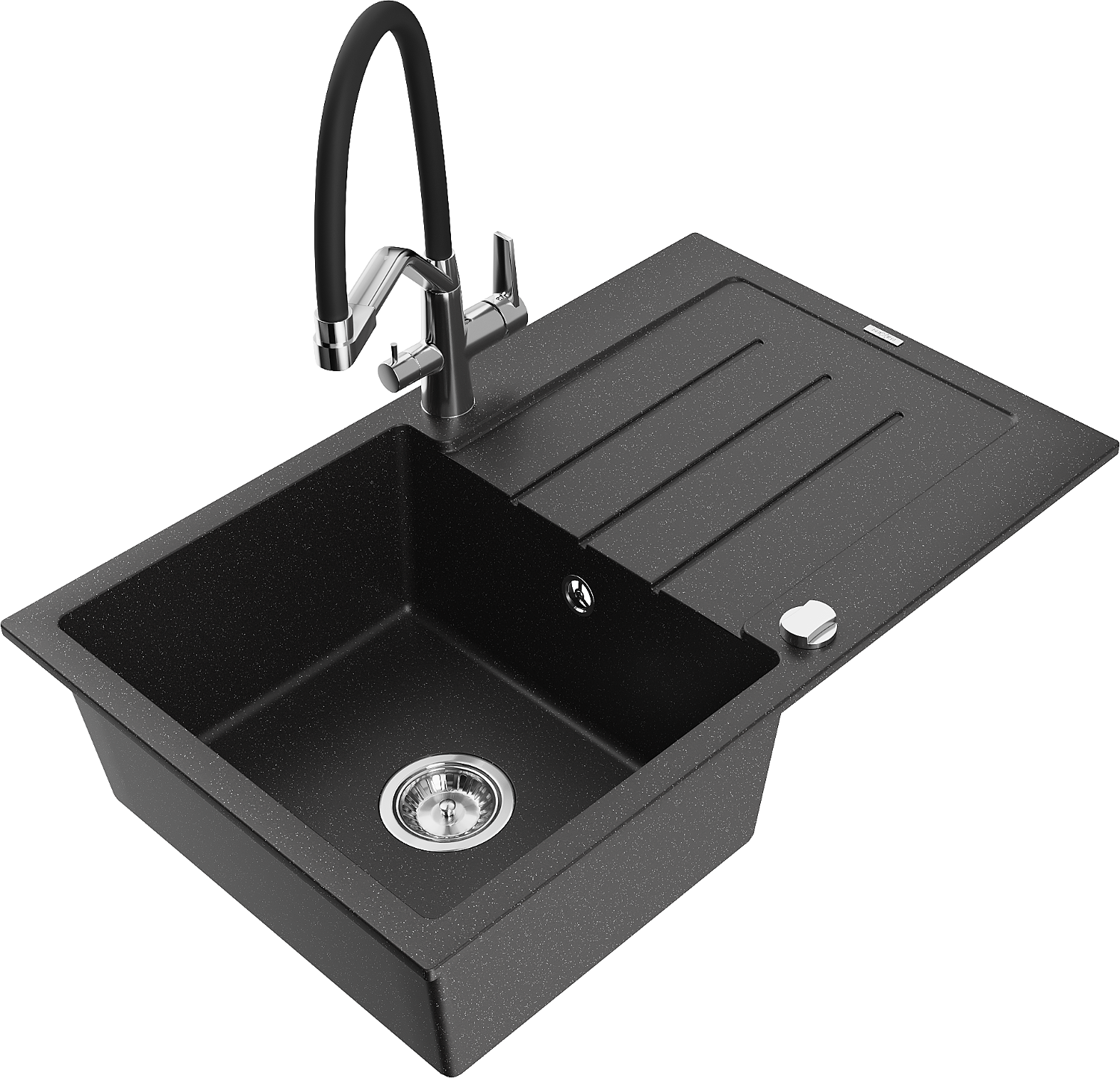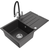 Mexen Bruno lavello in granito a 1 vasca con sgocciolatoio e miscelatore cucina Duo, nero/metallo argento - 6513-73-671701-07