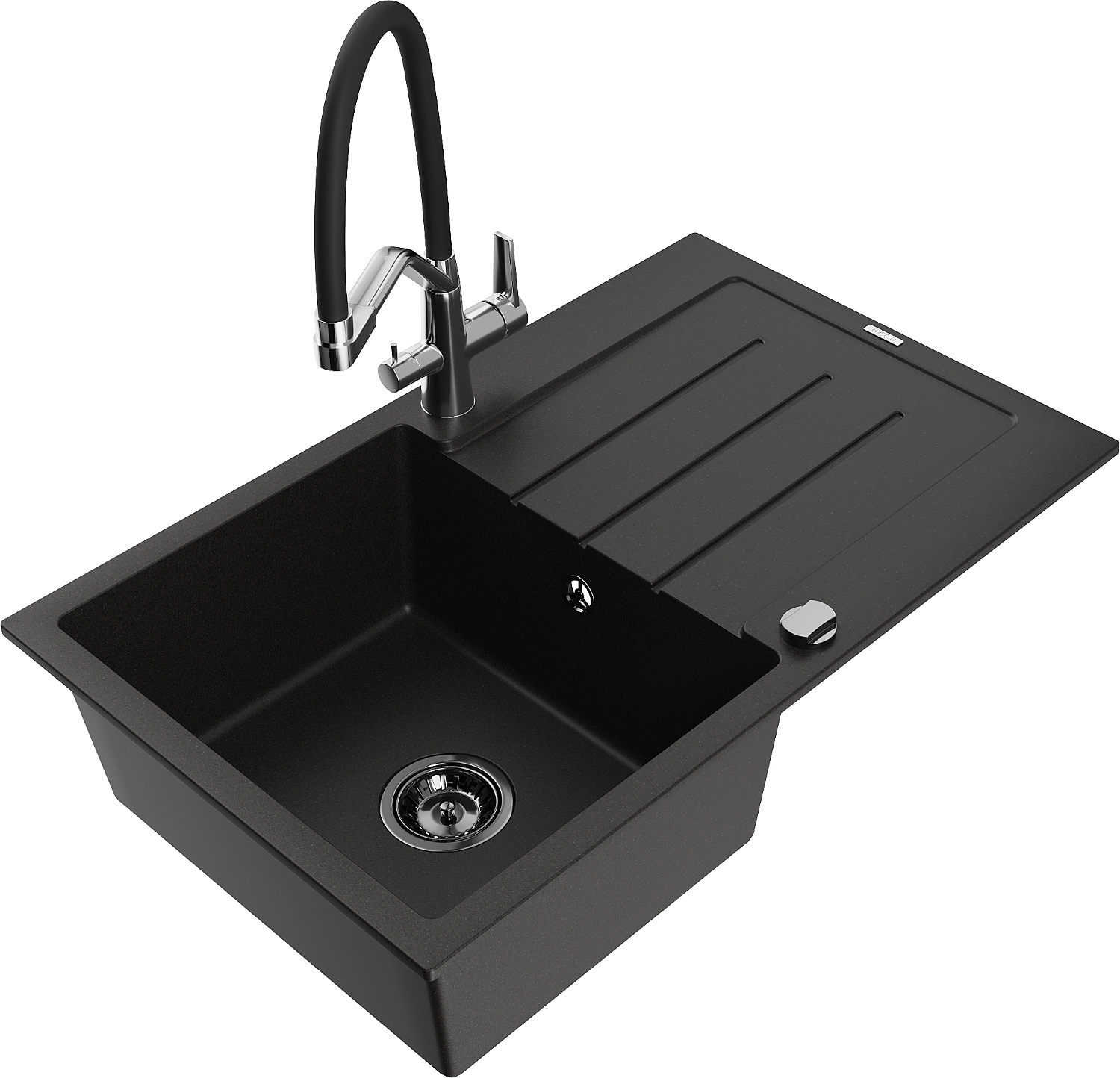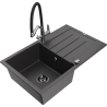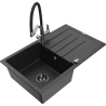 Mexen Bruno lavello in granito ad 1 vasca con gocciolatoio e miscelatore cucina Duo, nero - 6513-77-671701-07-B