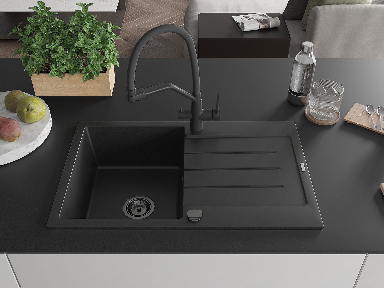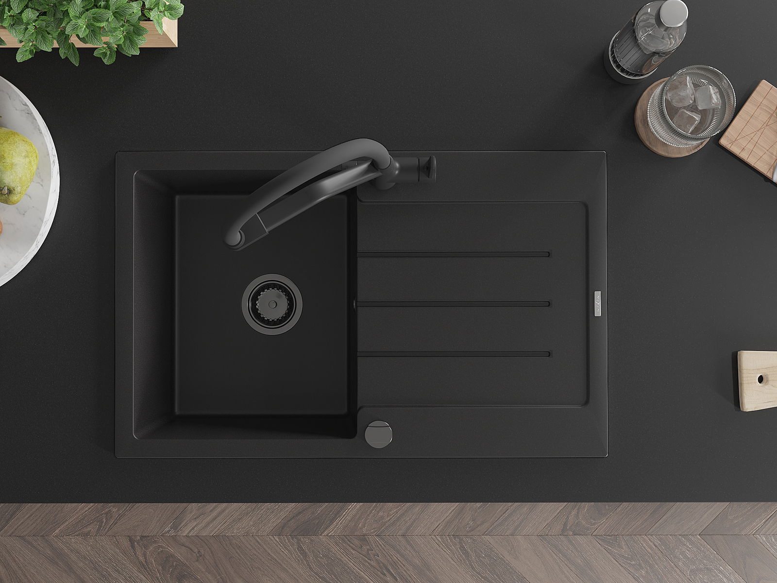 Mexen Bruno lavello in granito a 1 vasca con scolapiatti e miscelatore cucina Duo, nero - 6513-77-671701-70-B