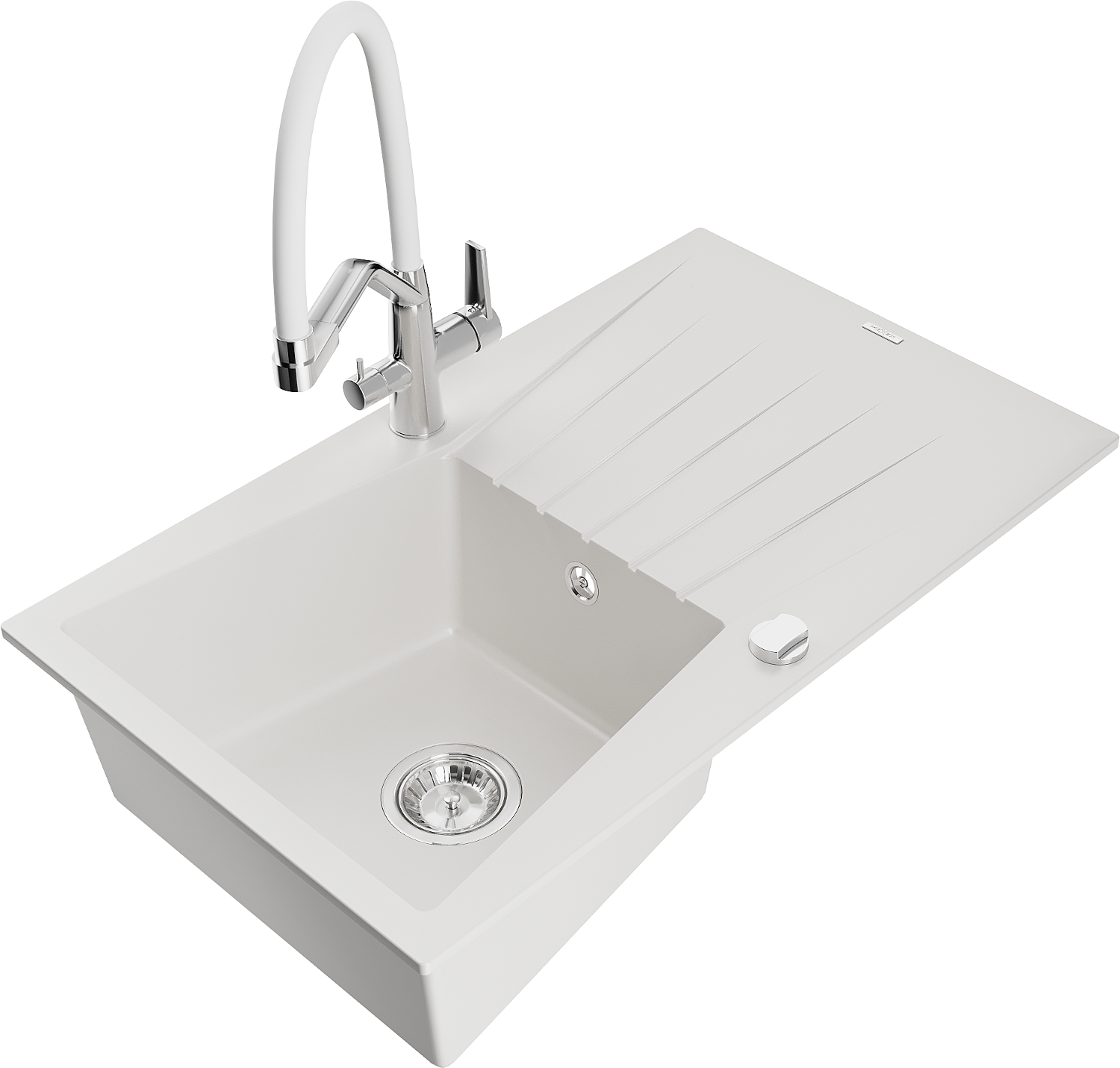 Mexen Cesar lavello da cucina in granito con 1 vasca e scolapiatti e miscelatore Duo, bianco - 6514-20-671701-02