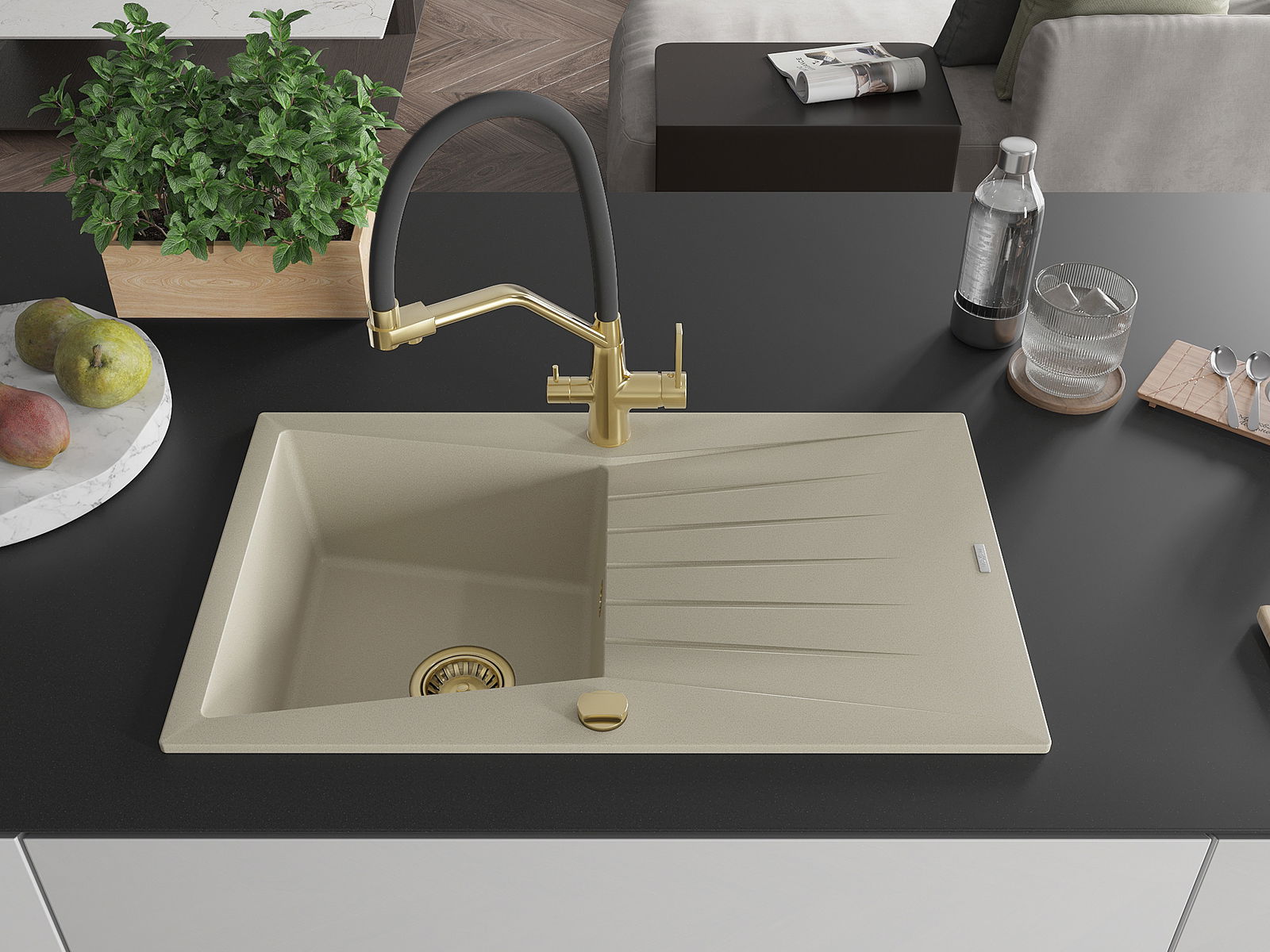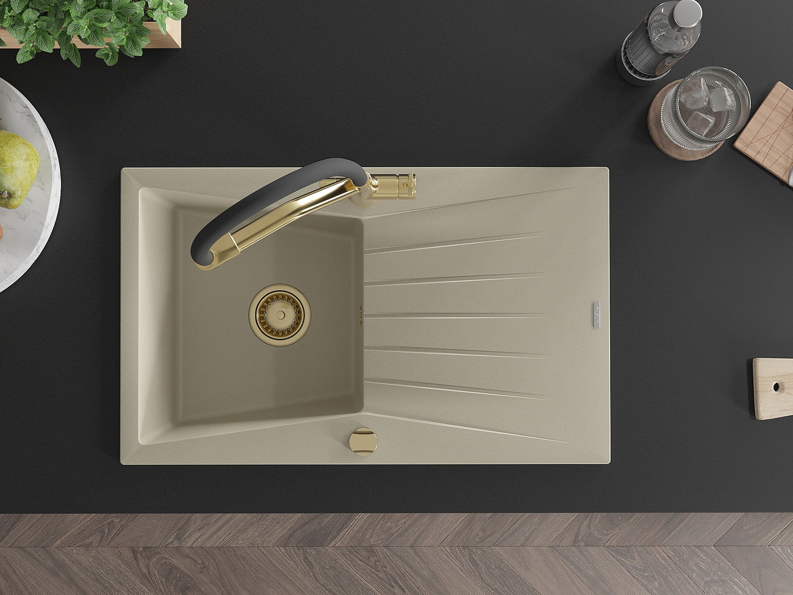 Mexen Cesar lavello da cucina in granito 1-vasca con sgocciolatoio e miscelatore Duo, beige - 6514-69-671701-57-G