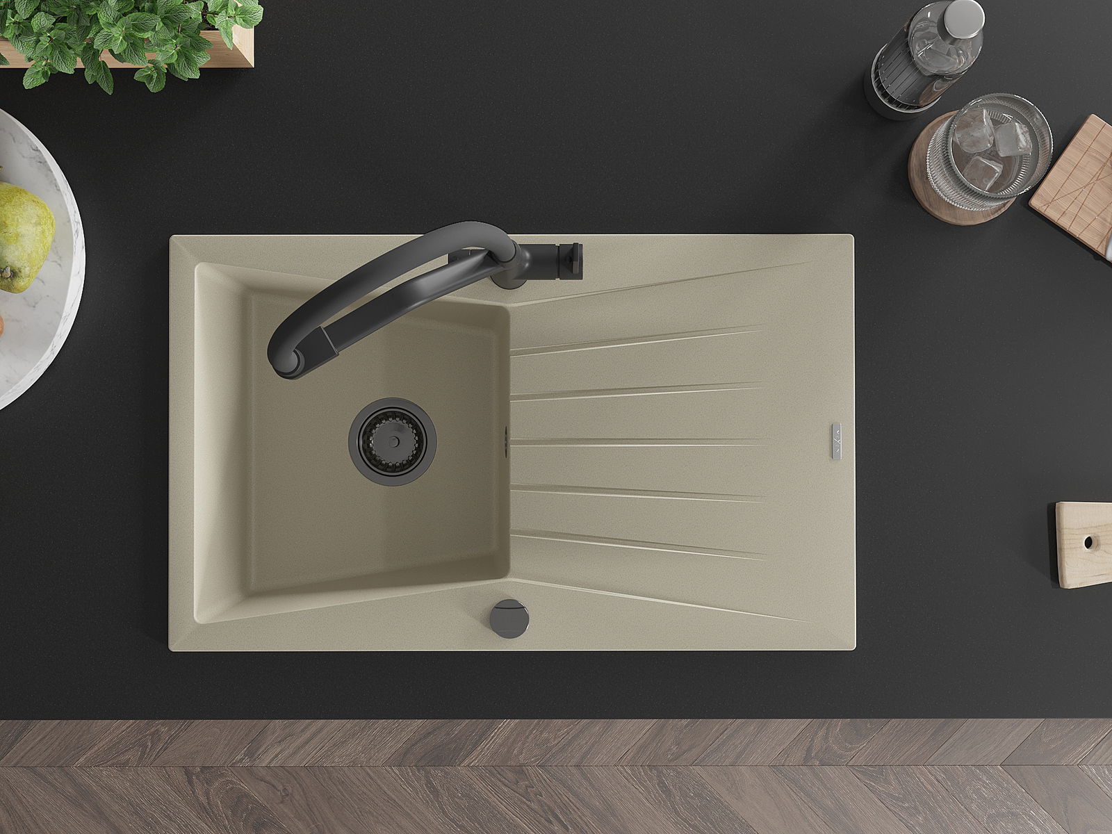 Mexen Cesar lavello in granito 1-vasca con scolapiatti e rubinetto cucina Duo, beige - 6514-69-671701-70-B