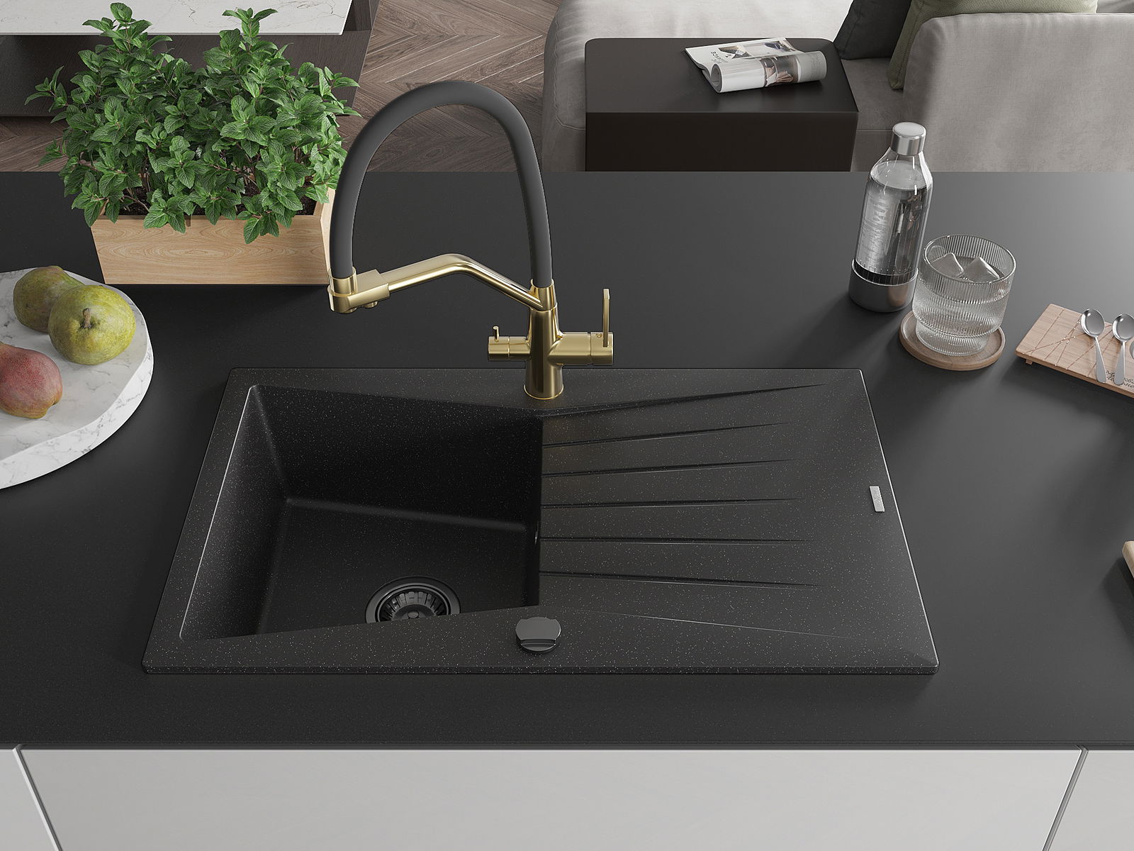 La scelta di un lavello con sgocciolatoio è una soluzione pratica che consente di riporre piatti, verdure e frutta lavati. Lo sgocciolatoio facilita la cucina quotidiana e aiuta a mantenere l'ordine in cucina.