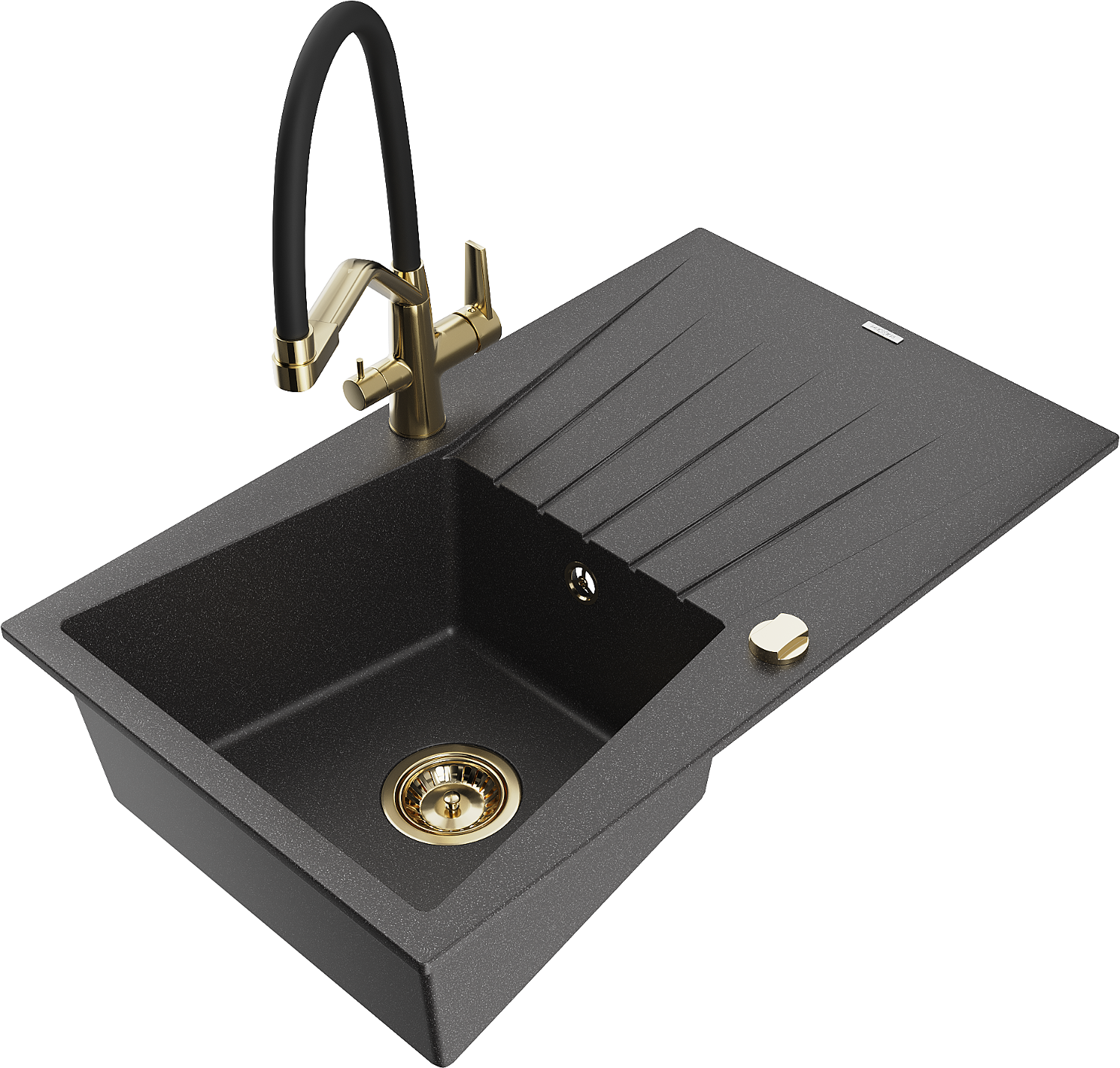 Mexen Cesar lavello in granito 1 vasca con sgocciolatoio e miscelatore cucina Duo, nero maculato - 6514-76-671701-57-G