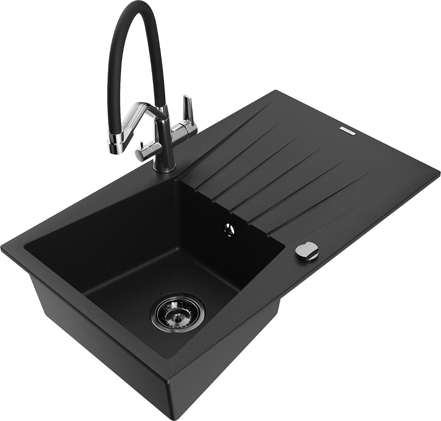 Mexen Cesar lavello in granito a 1 vasca con scolapiatti e miscelatore Duo, nero - 6514-77-671701-07-B