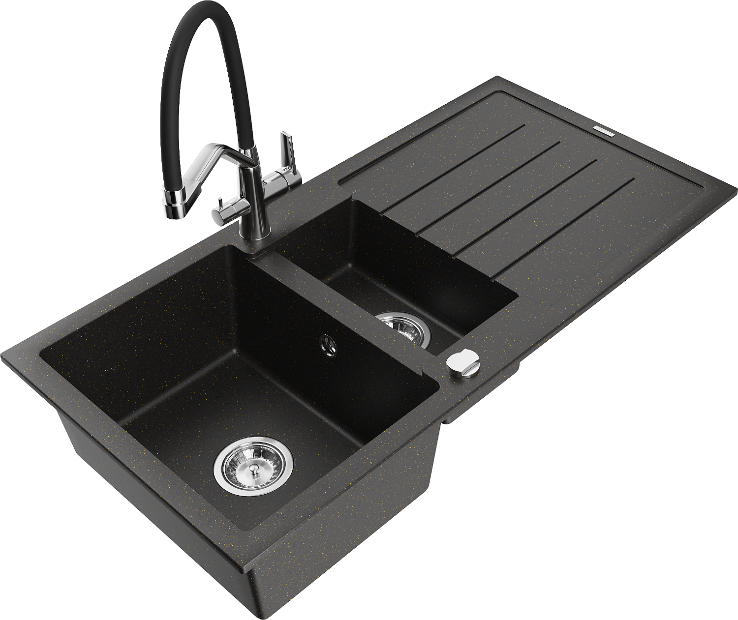 Mexen Andres lavello in granito 1,5 vasca con sgocciolatoio e miscelatore Duo, nero/oro metallizzato - 6515-75-671701-07