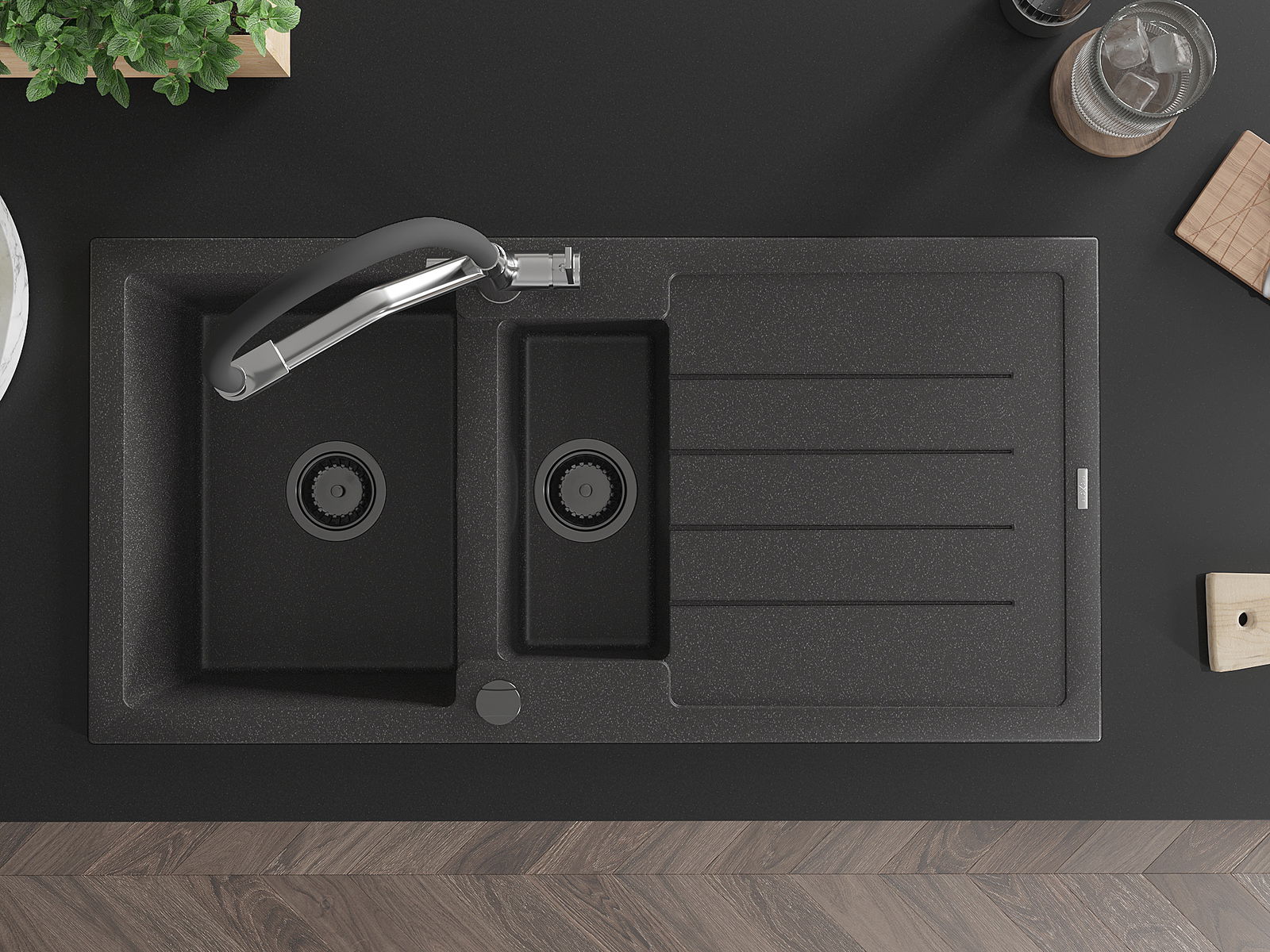 Mexen Andres lavello in granito 1,5 vasca con scolapiatti e rubinetto da cucina Duo, nero screziato - 6515-76-671701-07-B