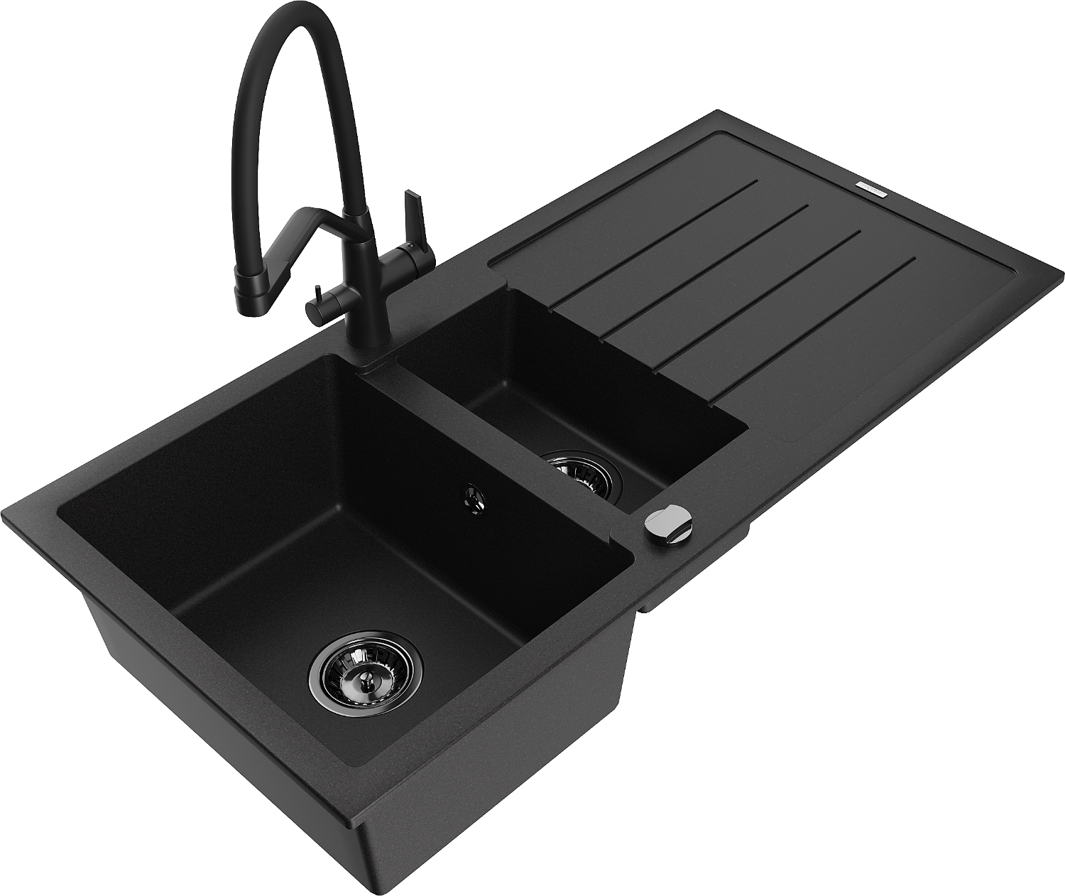 Mexen Andres lavello in granito 1,5 vasche con sgocciolatoio e miscelatore da cucina Duo, nero - 6515-77-671701-70-B
