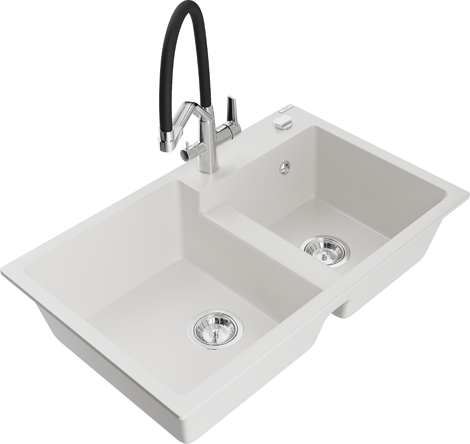 Mexen Tomas lavello in granito a 2 vasche con miscelatore da cucina Duo, bianco - 6516-20-671701-07