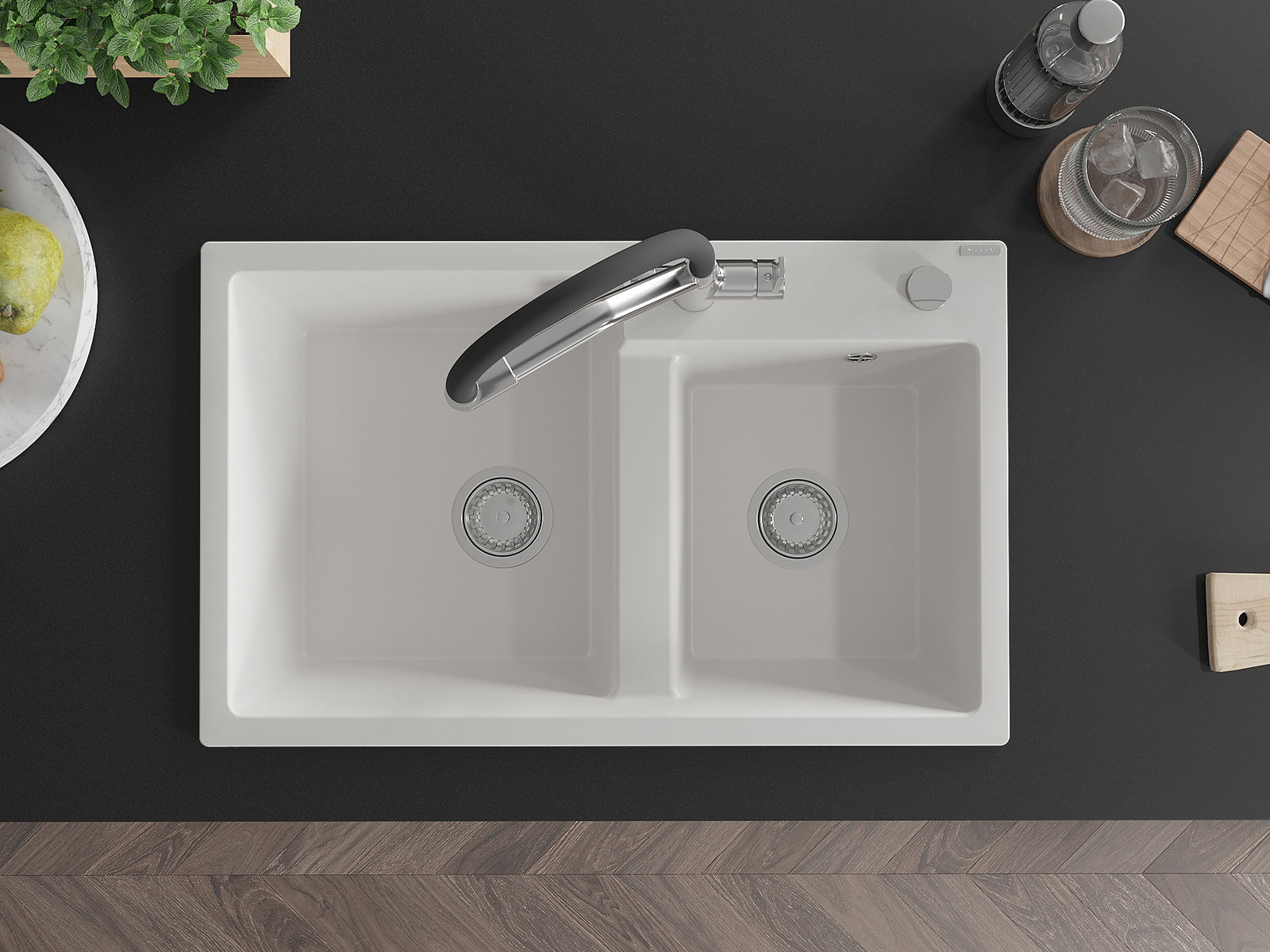 Il lavello è realizzato in granito di alta qualità. Rappresenta un complemento elegante e, soprattutto, pratico per ogni cucina, indipendentemente dal suo stile. L'alta qualità e la durata del granito garantiscono un utilizzo che dura per molti anni.