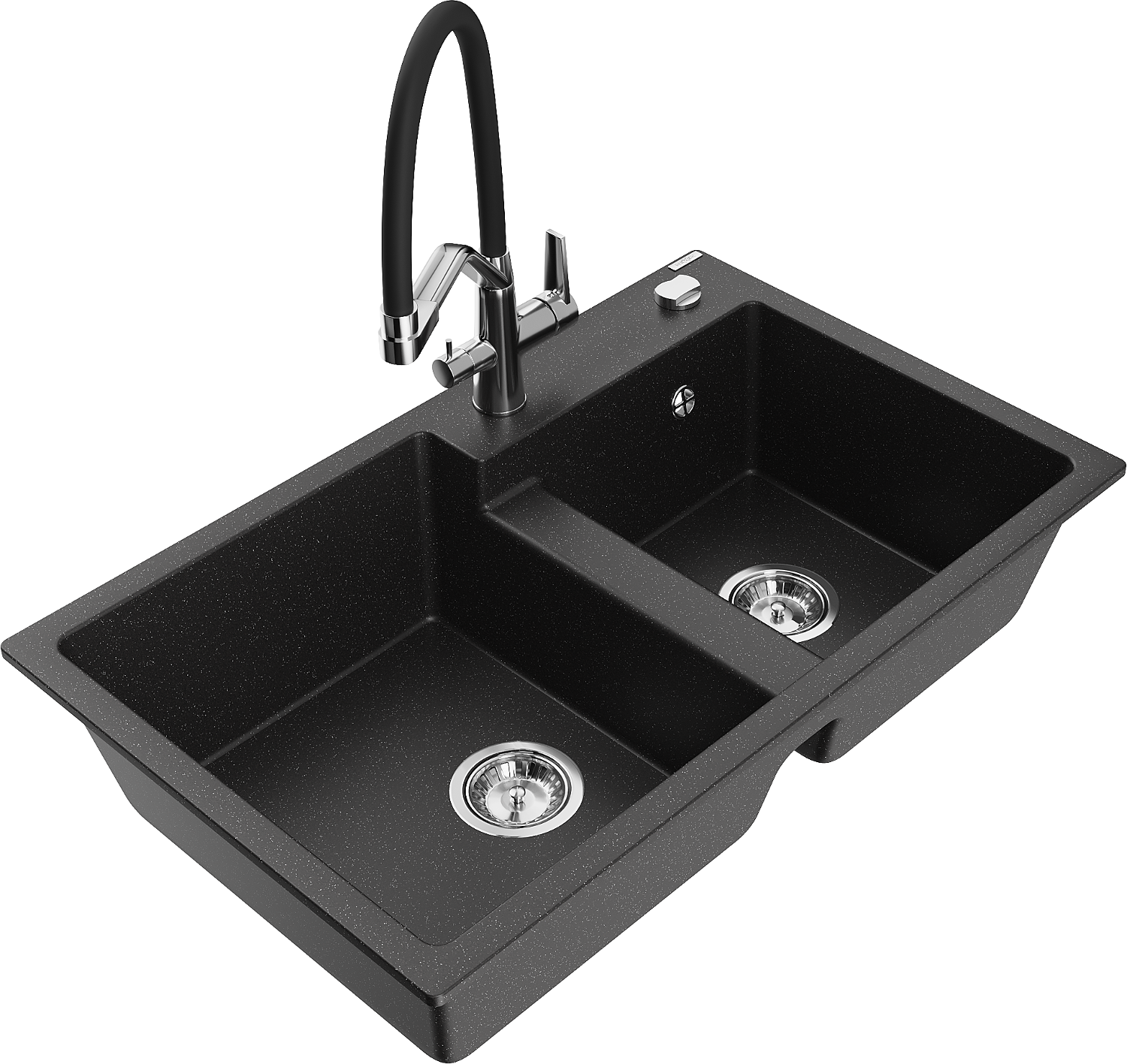 Mexen Tomas lavello da cucina in granito a 2 vasche con miscelatore Duo, nero/argento metallizzato - 6516-73-671701-07