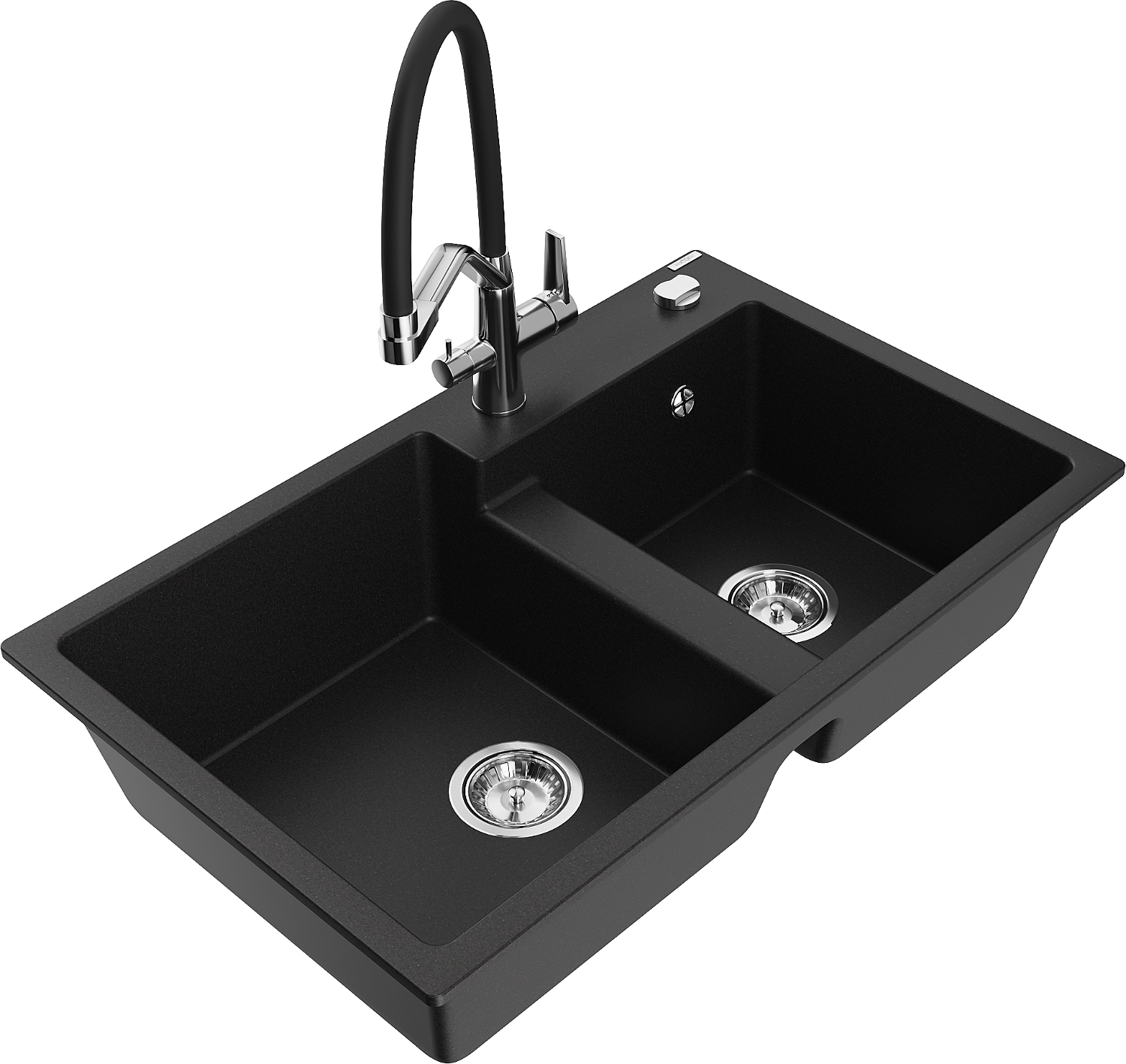 Mexen Tomas lavello in granito a 2 vasche con miscelatore Duo, nero - 6516-77-671701-07