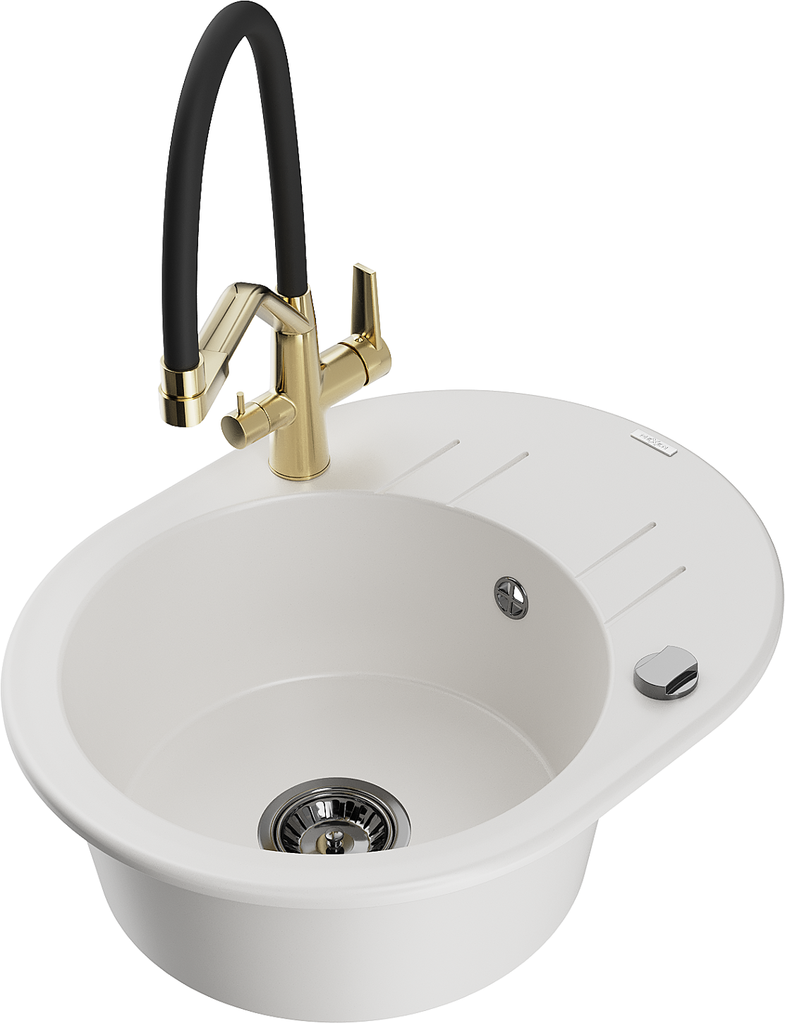 Mexen Kevin lavello in granito a 1 vasca con miscelatore Duo, bianco - 6517-20-671701-57-B