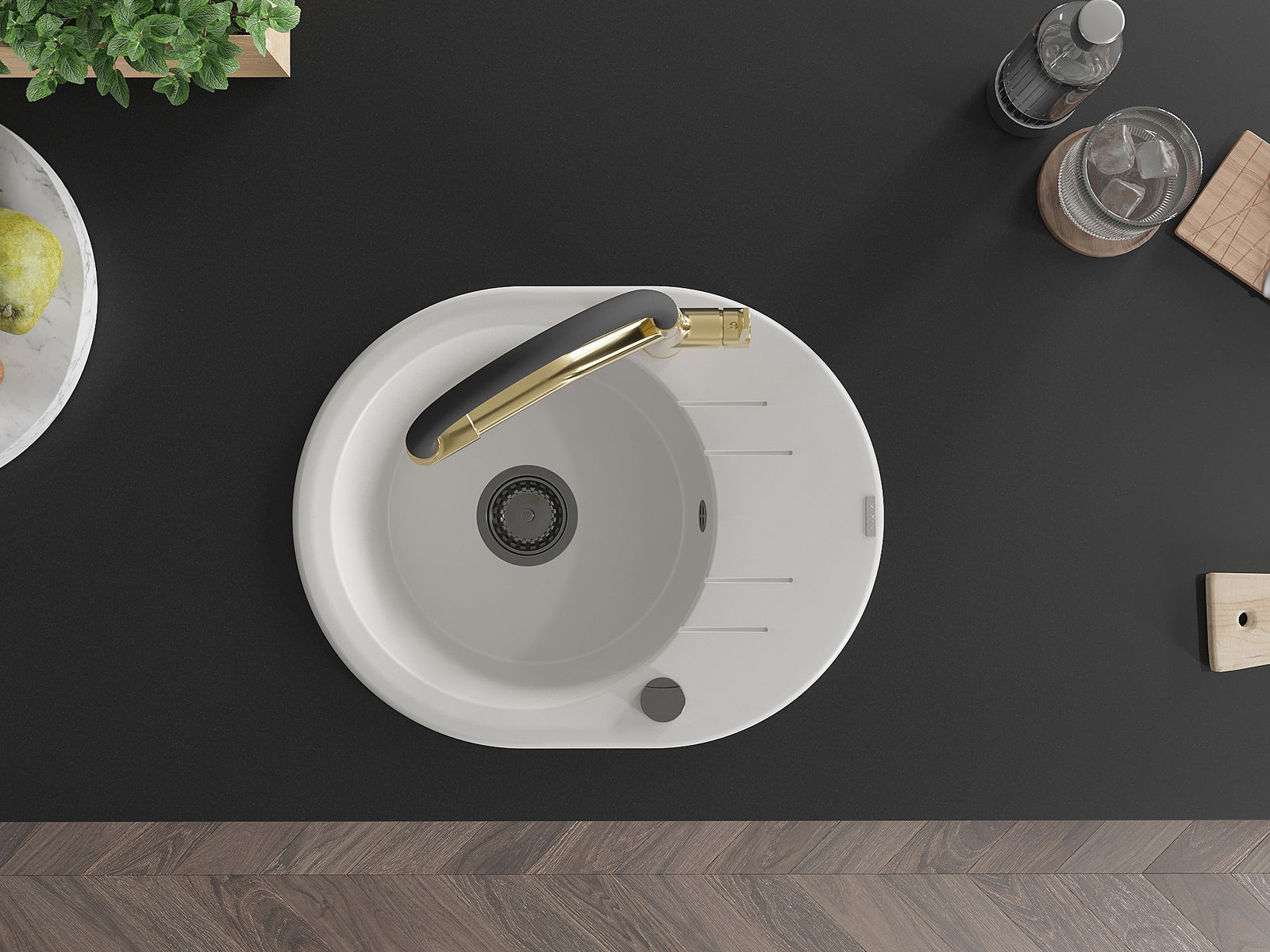 Il lavello è realizzato in granito di alta qualità. Rappresenta un complemento elegante e, soprattutto, pratico per ogni cucina, indipendentemente dal suo stile. L'alta qualità e la durata del granito garantiscono un utilizzo che dura per molti anni.