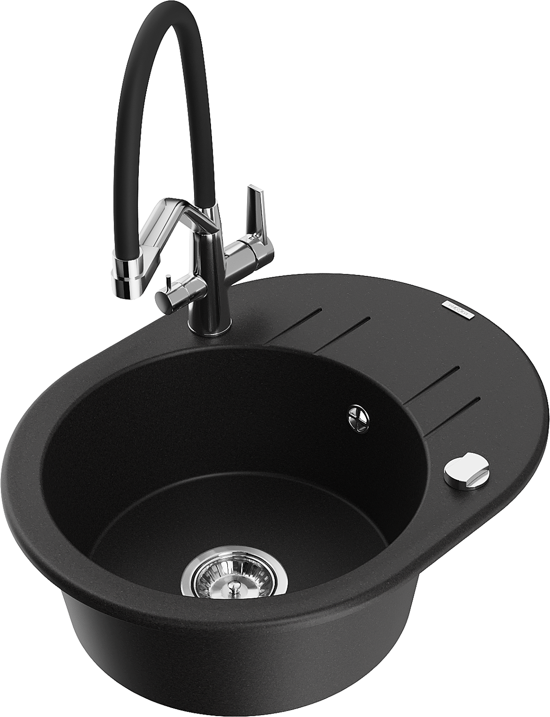 Mexen Kevin lavello in granito 1-vasca con rubinetto da cucina Duo, nero - 6517-77-671701-07