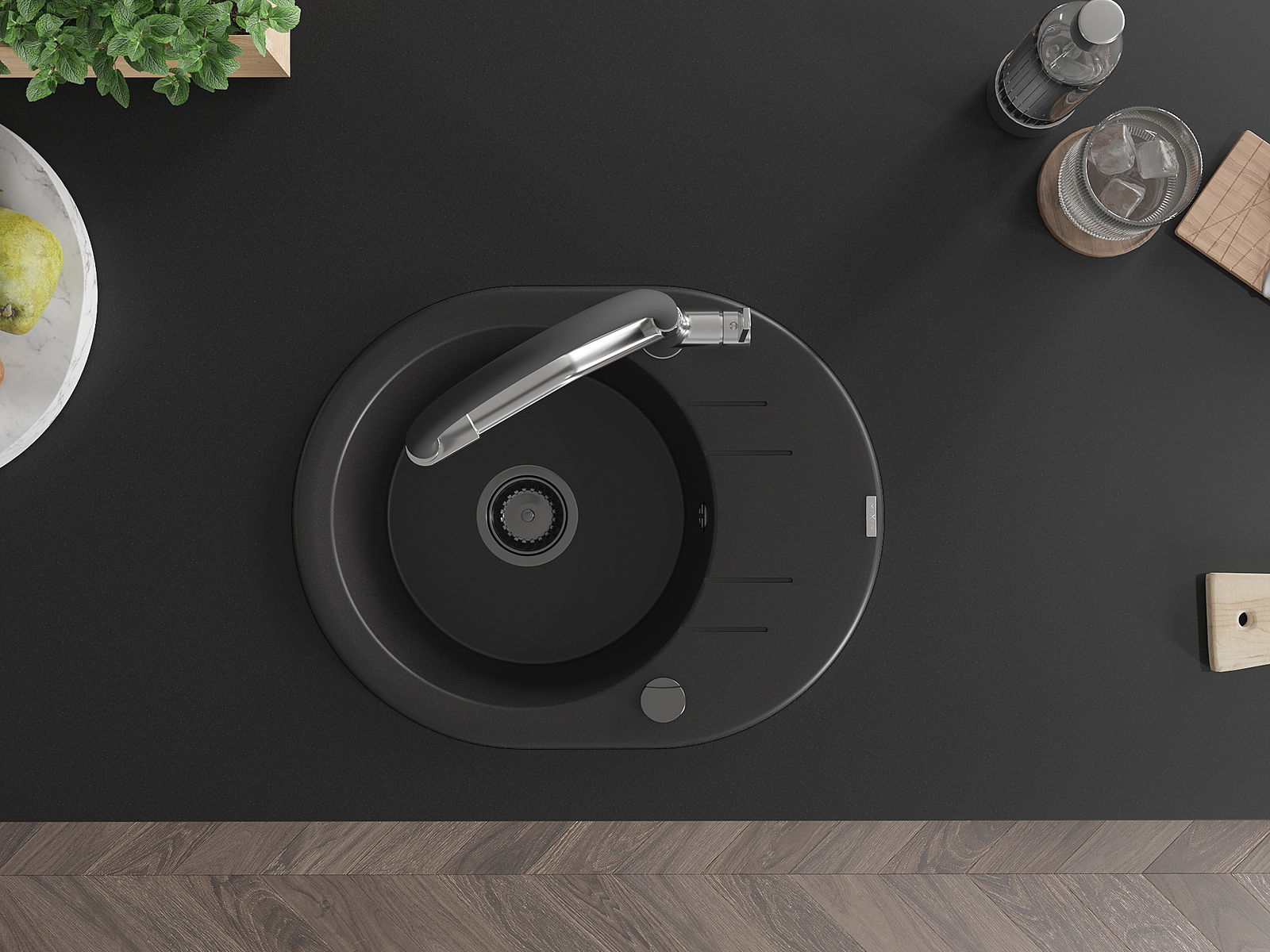 Il lavello è realizzato in granito di alta qualità. Rappresenta un complemento elegante e, soprattutto, pratico per ogni cucina, indipendentemente dal suo stile. L'alta qualità e la durata del granito garantiscono un utilizzo che dura per molti anni.
