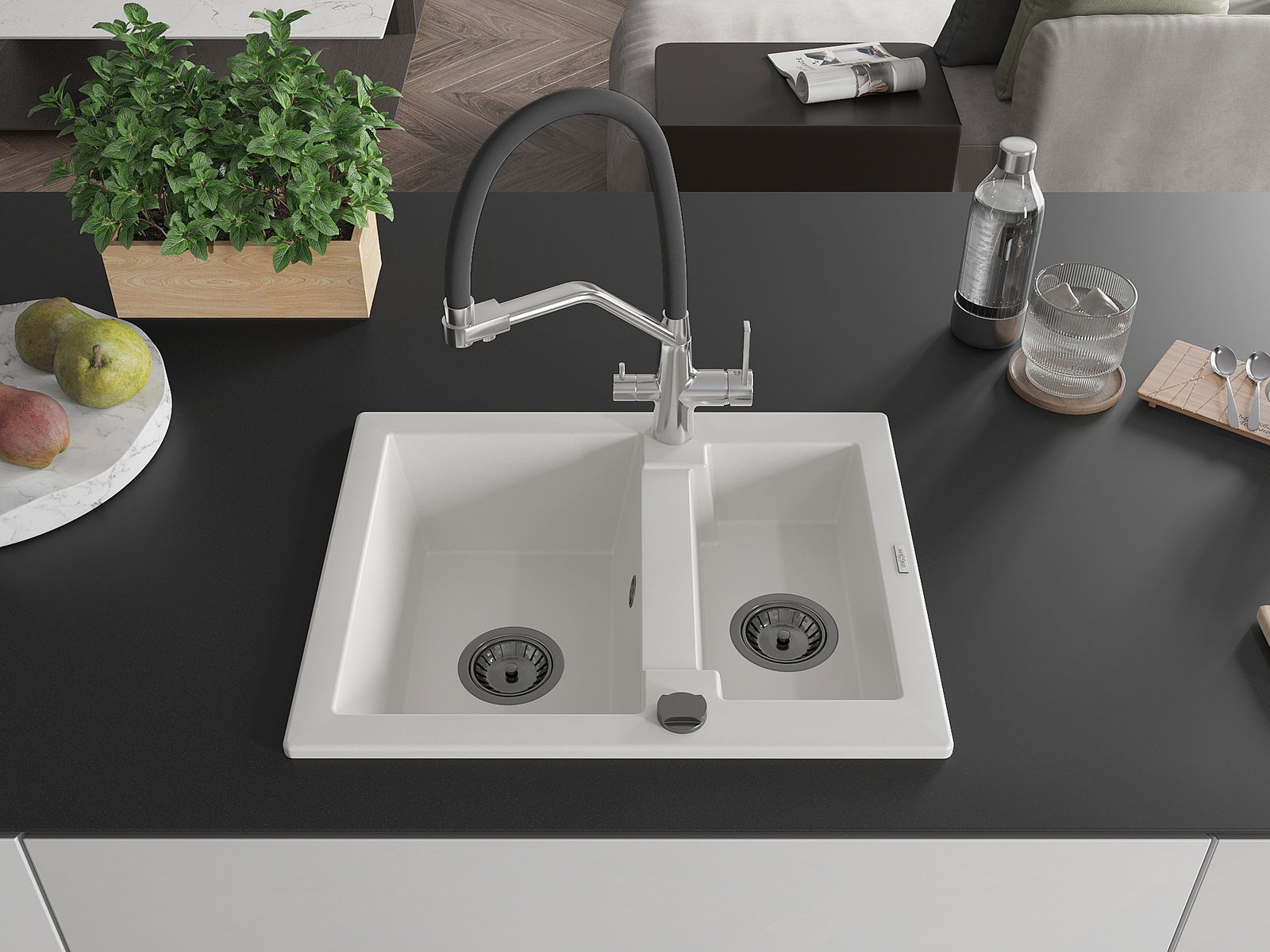 Il lavello è realizzato in granito di alta qualità. Rappresenta un complemento elegante e, soprattutto, pratico per ogni cucina, indipendentemente dal suo stile. L'alta qualità e la durata del granito garantiscono un utilizzo che dura per molti anni.