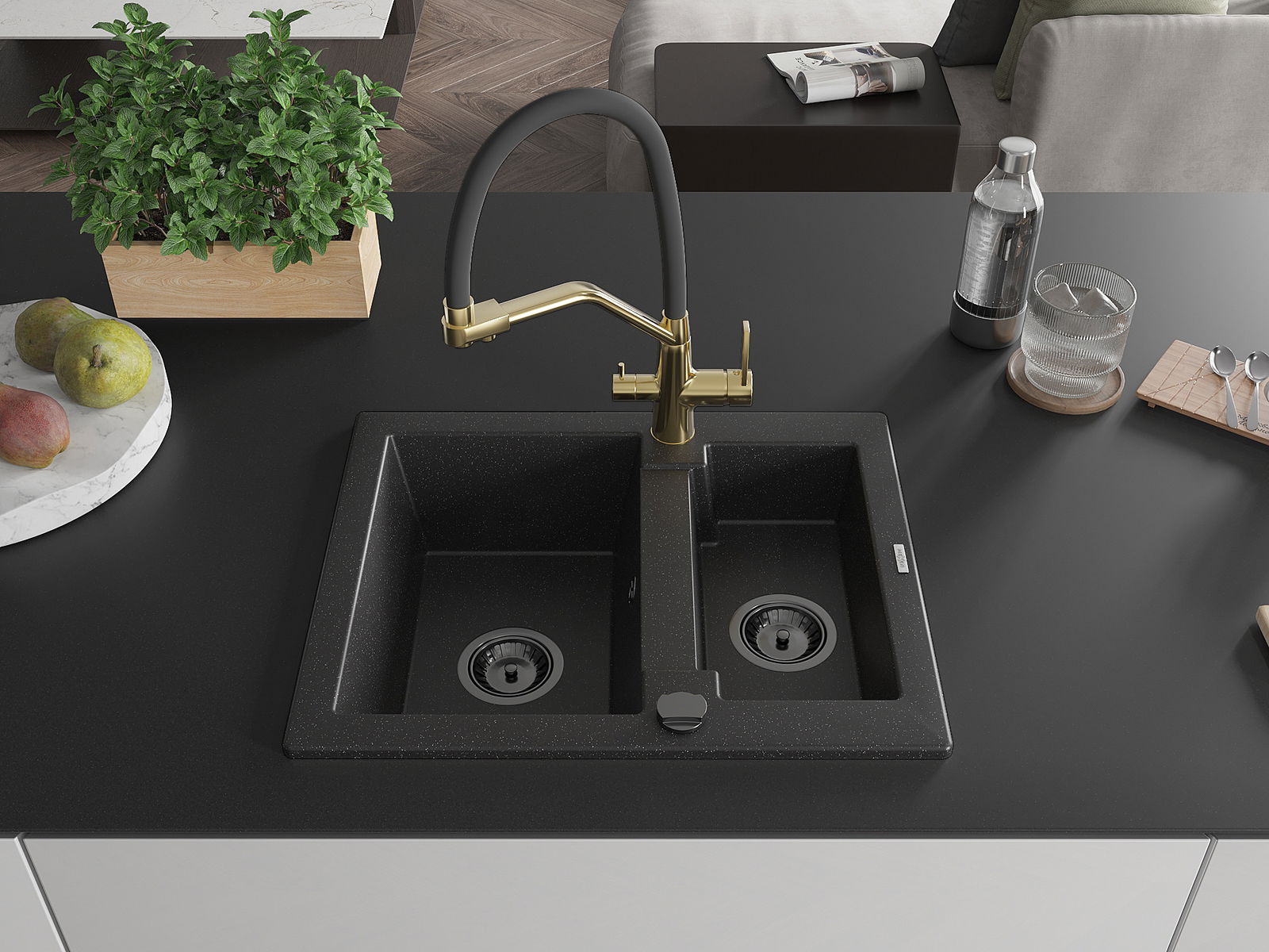 Il lavello è realizzato in granito di alta qualità. Rappresenta un complemento elegante e, soprattutto, pratico per ogni cucina, indipendentemente dal suo stile. L'alta qualità e la durata del granito garantiscono un utilizzo che dura per molti anni.
