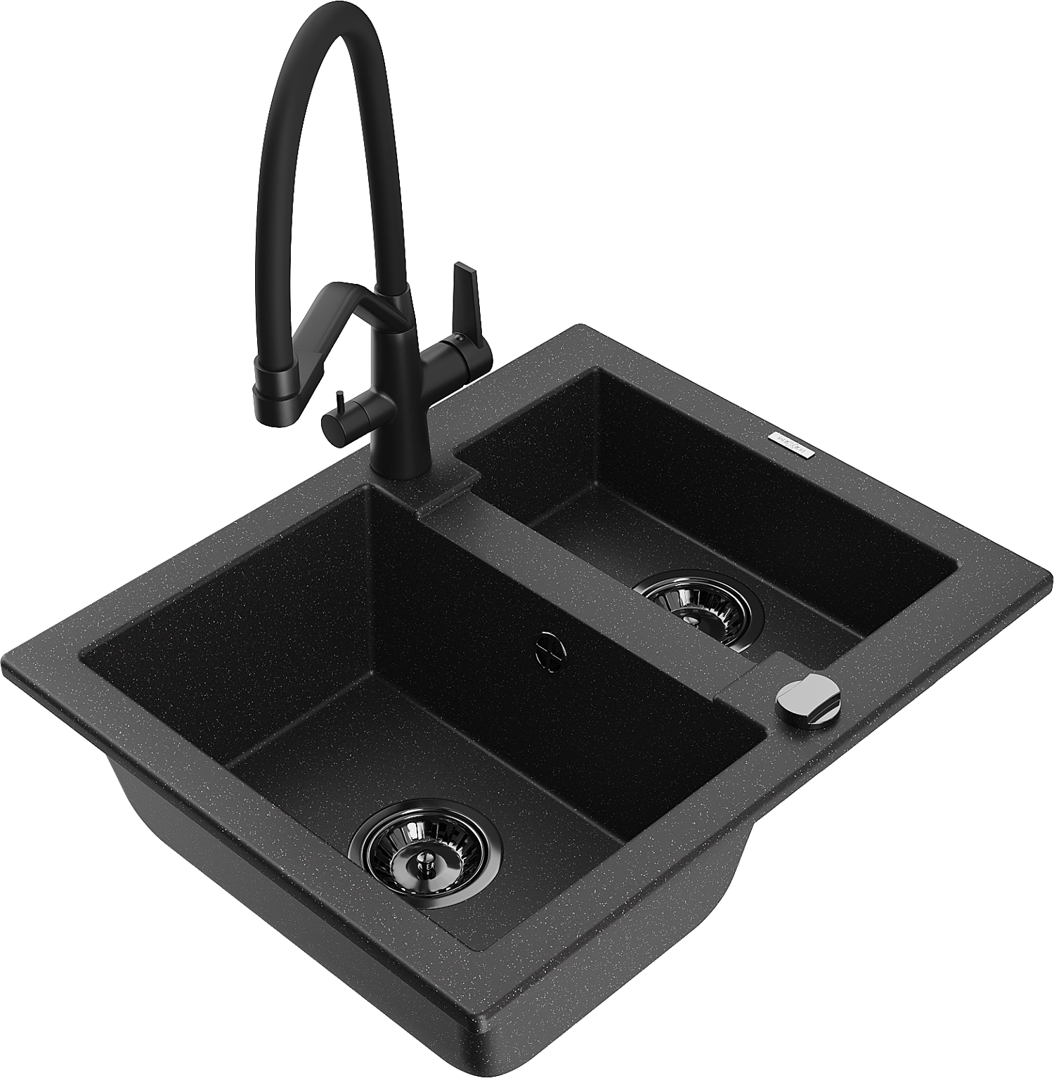 Mexen Carlos lavello in granito 1,5 vasche con miscelatore cucina Duo, nero/argento metallizzato - 6518-73-671701-70-B
