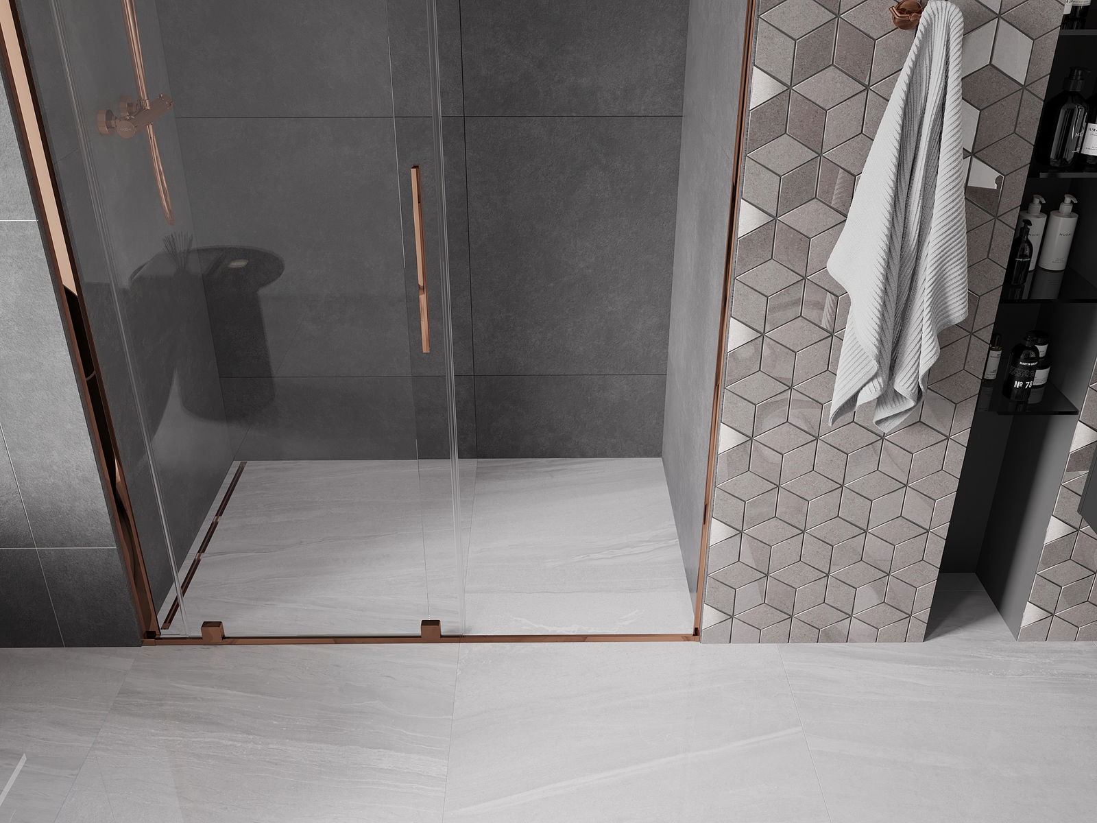 Mexen Velar porta doccia scorrevole 140 cm, trasparente, oro rosa - 871-140-000-01-60