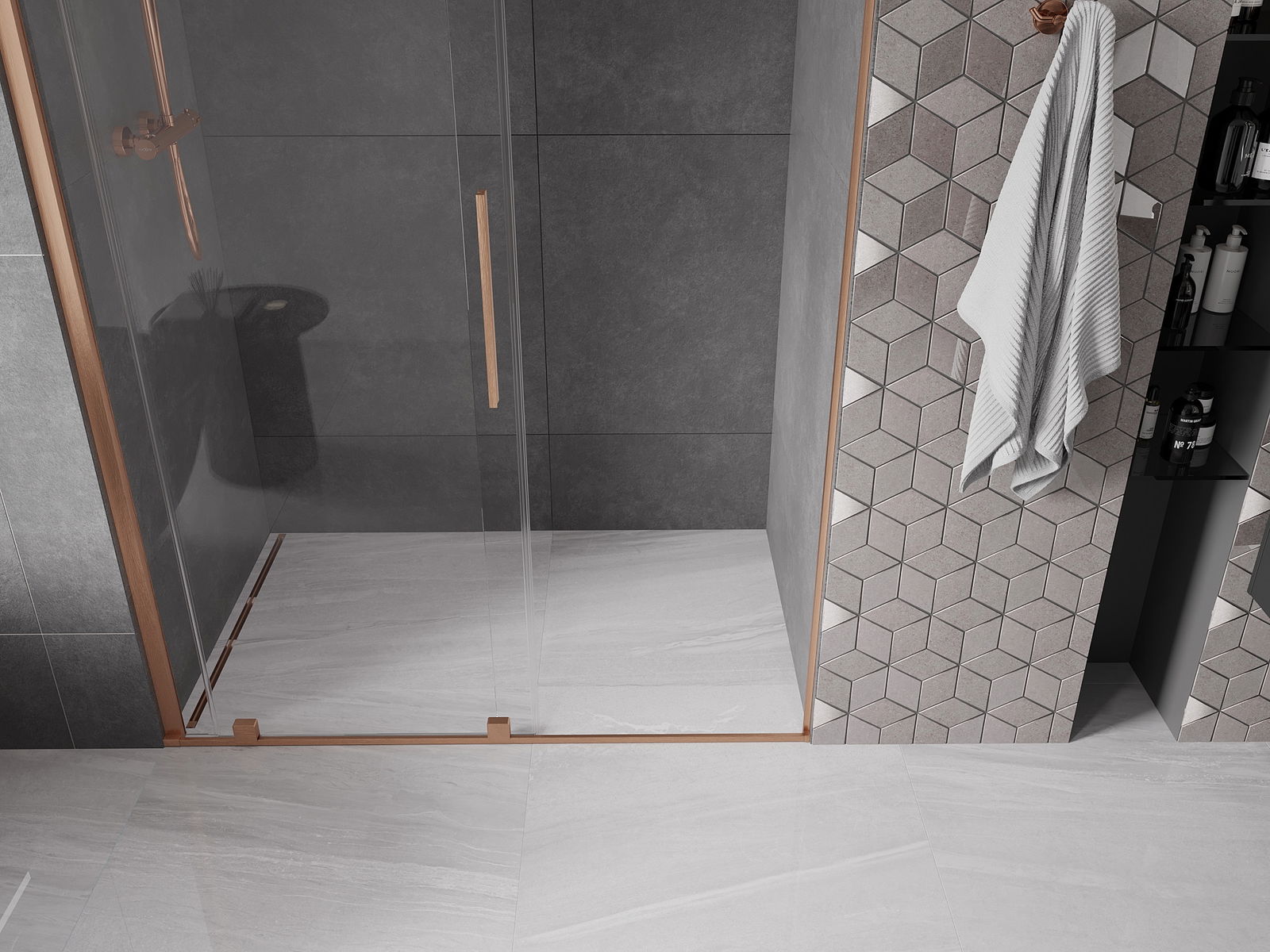 Il prodotto, a seconda delle esigenze, può essere installato sia sul piatto doccia che direttamente sul pavimento. Il metodo di installazione universale consente di adattare il prodotto a diversi tipi di bagni e configurazioni di spazio.