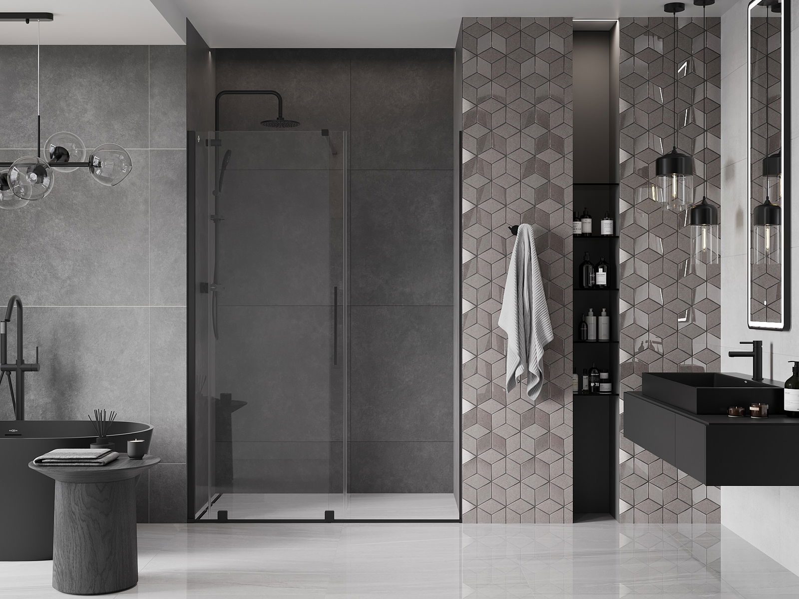 La comoda e pratica maniglia è realizzata in acciaio inossidabile. La forma alla moda unita alla finitura abbinata al colore dei profili conferisce all'intero un aspetto moderno e stiloso, evidenziando l'estetica di ogni bagno.
