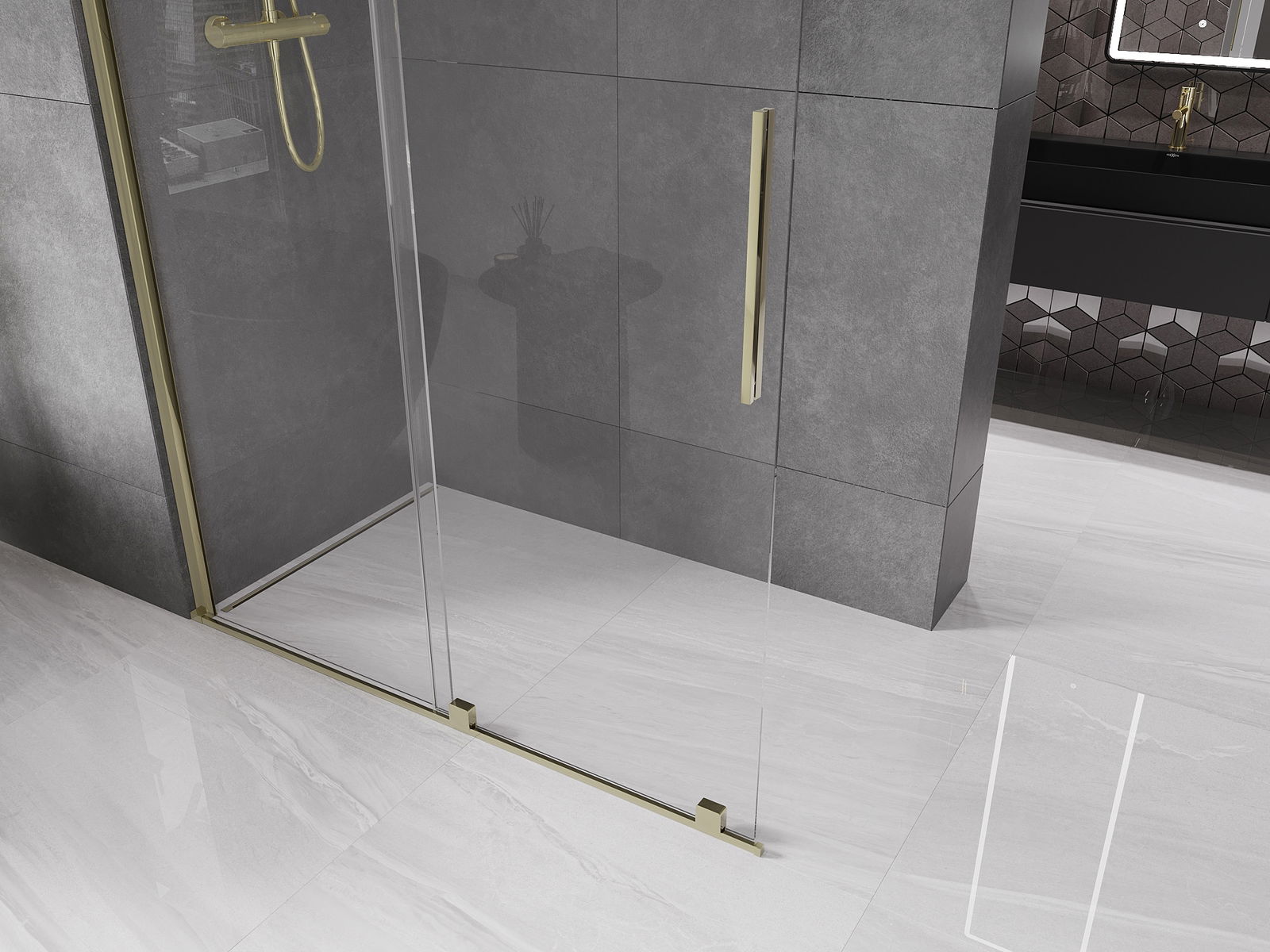 Mexen Velar parete doccia scorrevole Walk-in 130 x 200 cm, trasparente 8 mm, dorata - 871-130-000-03-50